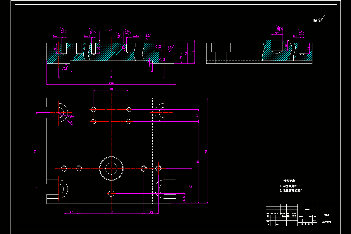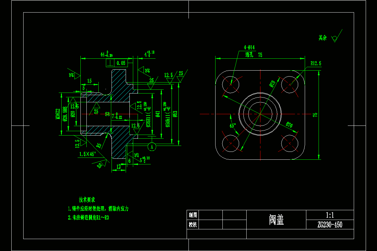 设计的零件是阀盖,设计内容有绘制毛坯图、零件图、编写加工工艺路线以及确定机床主轴的转速等。夹具的设计是,在钻床上将孔4-Ф14生产出来,设计一定要合理,用起来要方便,这样生产零件的质量才能符合需要。