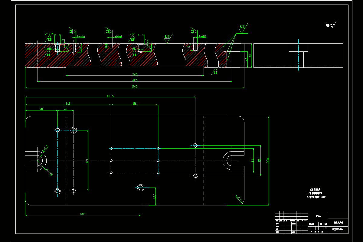 在对零件图解读后,确定零件生产类型,编写工艺路线,确定主轴转速、切削量等,填写工序卡。完成零件图、毛坯图绘制。经过分析决定设计钻底面8个孔钻床专用夹具,确定定位、夹紧方案;选择定位、夹紧元件;设计夹具体等。