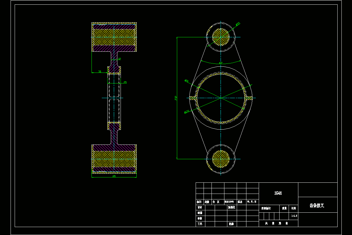 本次研究的对象是—齿条拨叉。是机器上重要的零件之一。使机构相应运动按照工作者的要求工作,获得所需的速度和扭矩的作用。另外,本次设计的齿条拨叉其零件材料为ZG45。设计内容包含加工工艺设计和铣头部25斜面夹具设计。