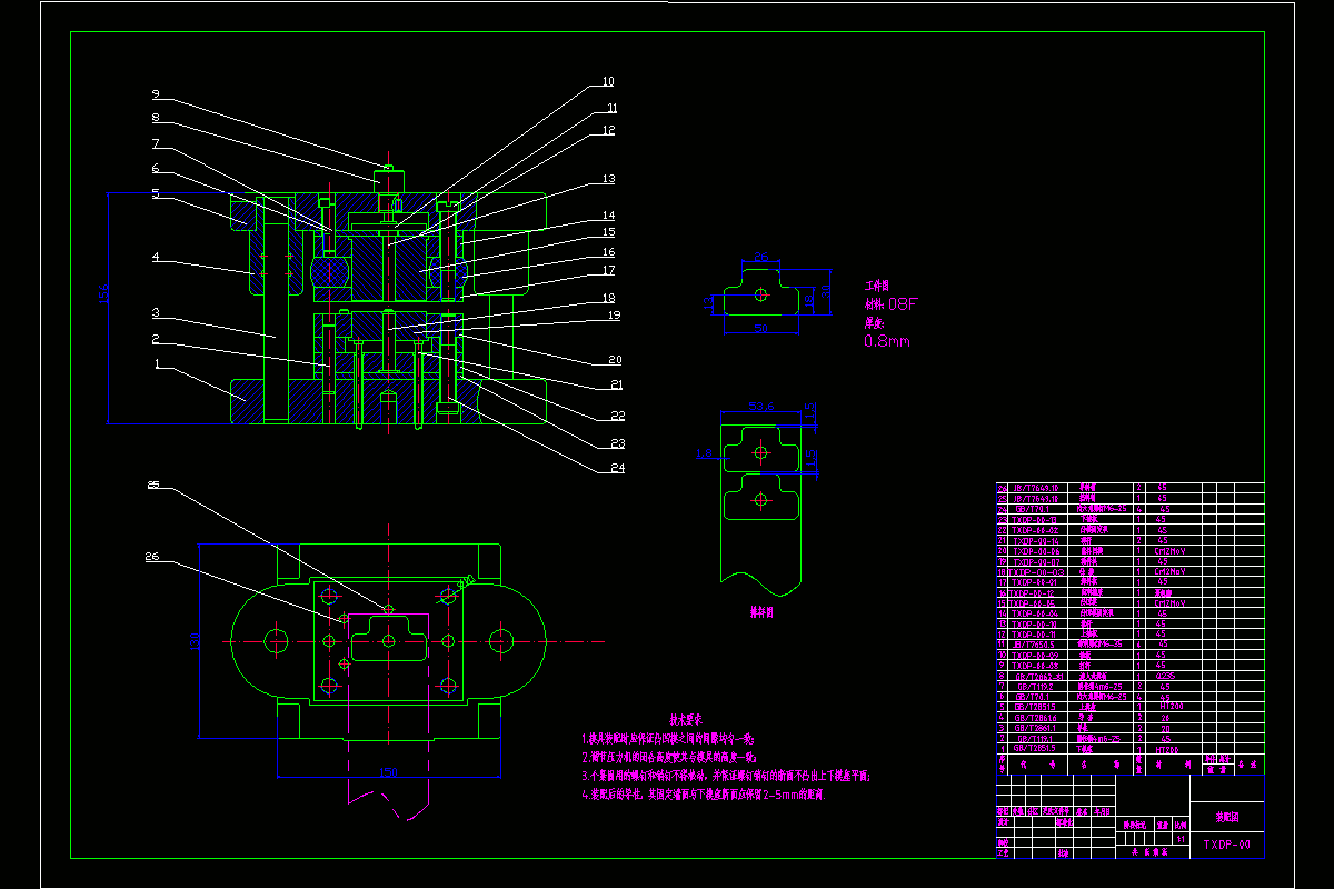 冷冲冲裁模主要用于金属制品的成型,它是冲压制品生产中十分重要的工艺装置。冲压模的基本组成是:上下模座、下模垫板、下模固定板、凹模镶块、抬料钉、导料板、卸料板,导柱导套、卸料板弹钉、卸料板等。