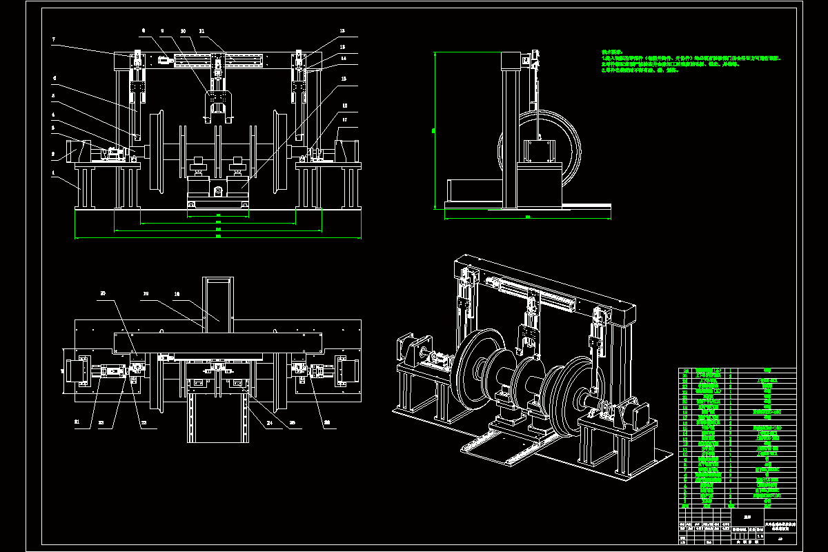 2.轮对定位及旋转部分;定位方法采用以轴颈面定位,而需要添加转轮机构使轮对在定位夹紧的同时能慢速旋转,以便于测量制动盘的端面跳动。完成了对定位轴承及转轮电机的选择。