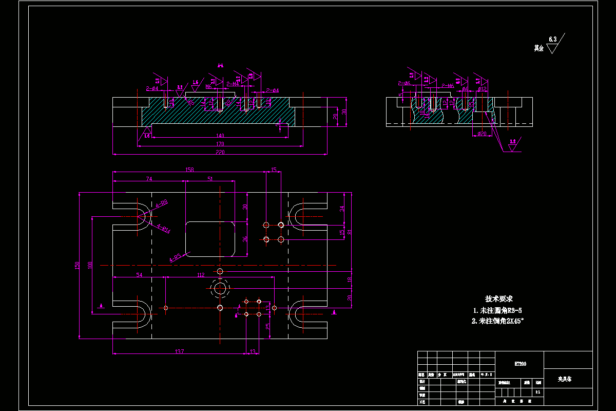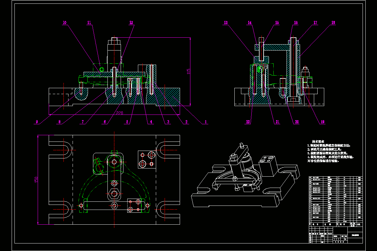 完成夹具的所有设计后,用AutoCAD进行二维图的绘制,首先画零件图、毛坯图,然后绘制装配图及夹具体零件图等。标注相关尺寸及技术要求,最后进行说明书的撰写、整理、修改完成该课程设计,达到了教学要求。为以后的学习和工作夯实了基矗