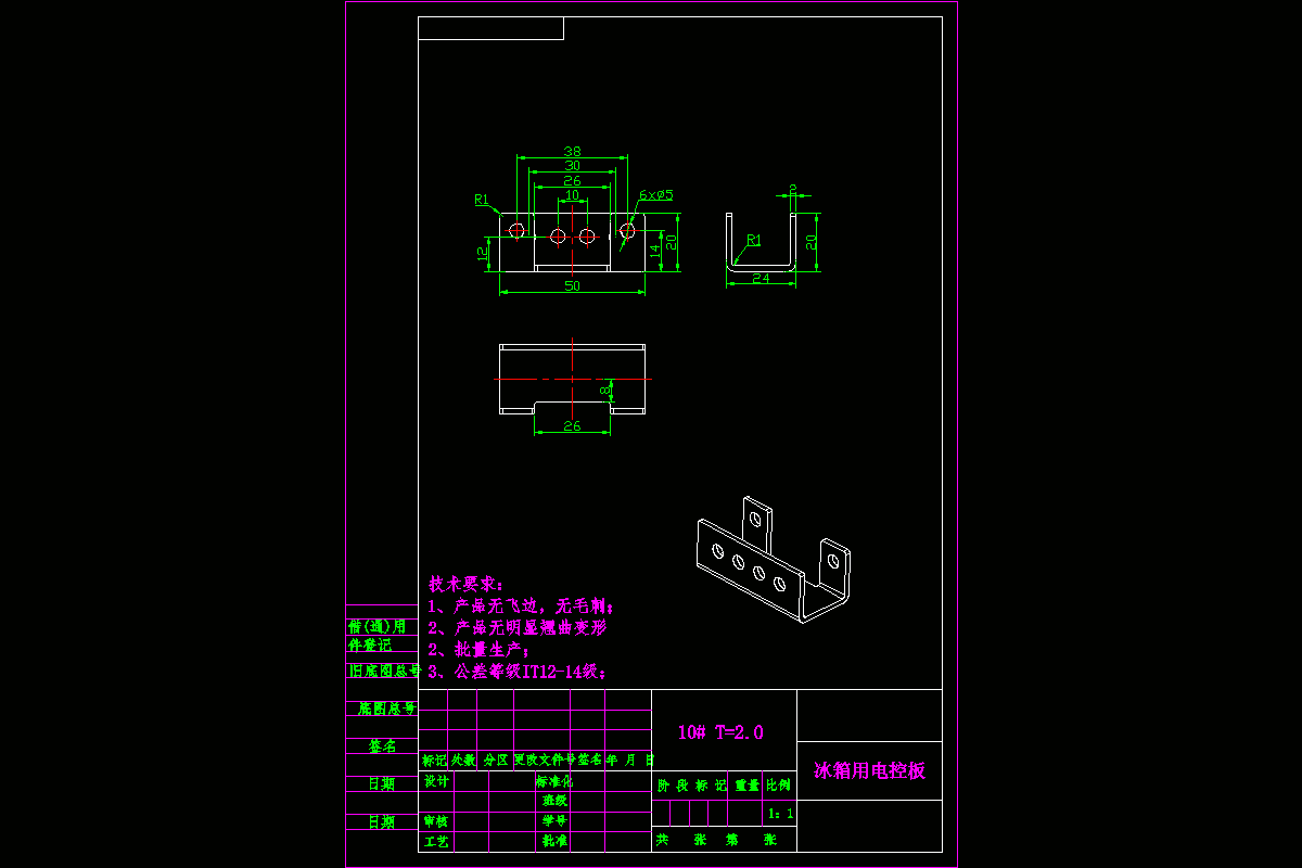 关键词:冰箱用电控板、冲压模具、工艺、展开尺寸