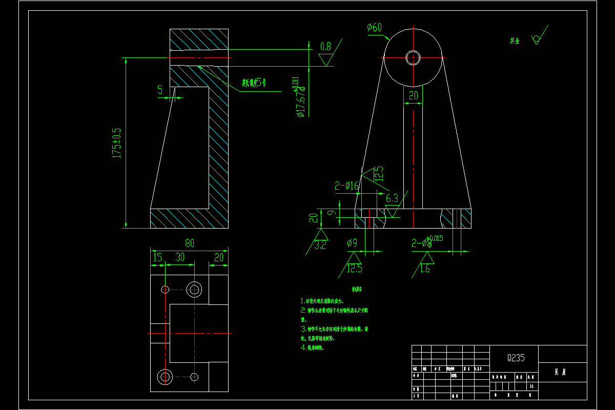圆弧零件的加工工艺规程和车M30×2外螺纹的工艺设计、工序设计以及专用夹具的设计三部分。在工艺设计中要首先对零件进行分析,了解零件的工艺再设计出毛坯的结构,并选择好零件的加工基准,设计出零件的工艺路线;接着对零件各个工步的工序进行尺寸计算,关键是决定出各个工序的工艺装备及切削用量;然后进行专用夹具的设计,选择设计出夹具的各个组成部件,如定位元件、夹紧元件、引导元件、夹具体与机床的连接部件以及其它部件;计算出夹具定位时产生的定位误差,分析夹具结构的合理性与不足之处,并在以后设计中注意改进。