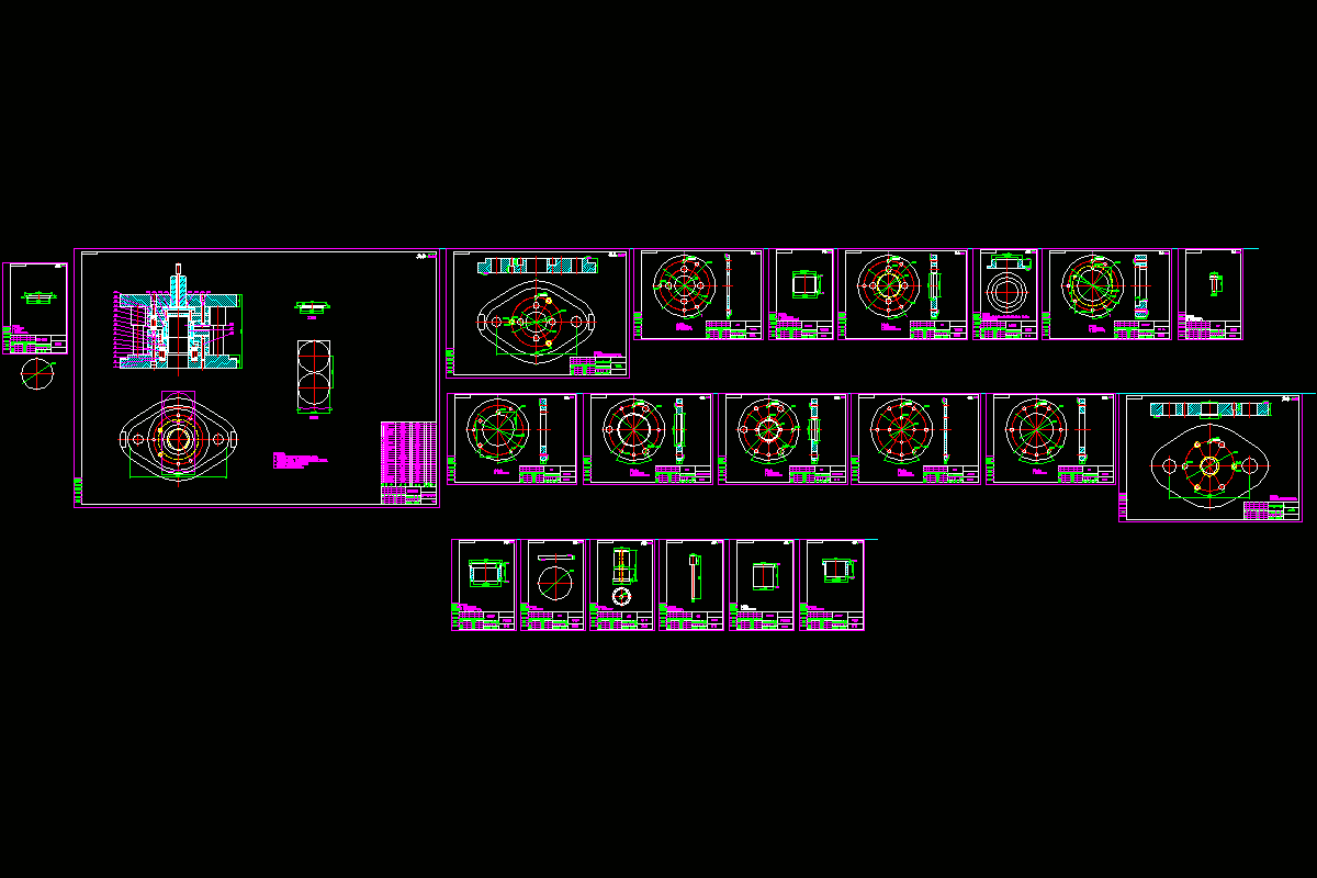 本次设计的内容是用模具生产收油盘,并且制定出相关的工艺路线,设计出生产所用模具。工艺路线主要包括落料、拉深、冲孔、切边三道工序,设计其模具,适合实际生产。冲压工艺的选择是在查阅了相关资料和对产品外形成尺寸进行了仔细分析的基础上制定出来的;冲压模具的设计综合考虑了经济性、零件的冲压工艺性和复杂程度等诸多因素;产品毛坯的展开尺寸计算是在方便计算又不影响零件成型的前提下转化为熟悉的模型进行的。模具的主要部分零件给出了相应的尺寸计算,同时给出了详细的零件结构设计,并附有相应的零件图,最后根据零件结构设计和生产零件的要求生成了总装配图。