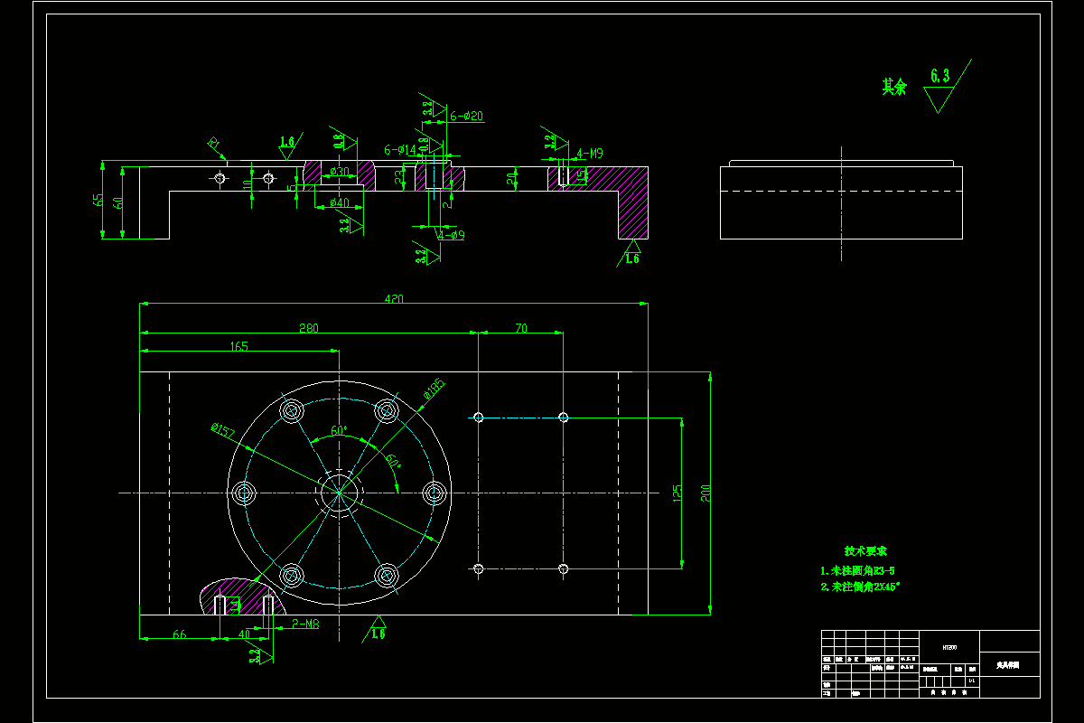 这篇写的题目是转子泵泵体工艺及回转式钻孔夹具设计,依据任务书需要设计钻削6XФ13孔回转式专用夹具。