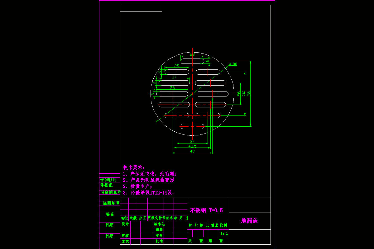 关键词:冲压工艺;模具设计;方案论证;工艺计算;地漏盖