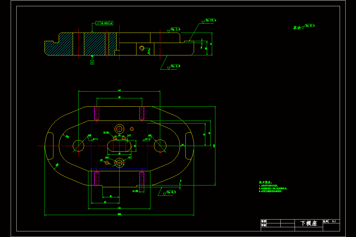 摘要:本文主要分析了普通垫片的冲裁成形的工艺特点,其中包含了通过对工件形状的分析、相关尺寸的计算、制造工件的工艺性分析、冲裁力的计算、加工所需要的模具设计时需要特别注意的关键点,根据各种考量确定了零件在条料上的排样方法和基本确定单工序模具的大体结构。此单工序模具有且只有直接落料一道工序。重点叙述了凸模、凹模、卸料装置等主要零件的设计方法和制造工艺,以及冲裁模具所需冲压设备的选择。同时描述了本模具的大致工作行程,各个零件动作的配合运动协调性、,以及凸模和凹模之间冲裁装配间隙的控制,还有各个零件之间的相互配合运动的精度,从而制定本零件的加工制作的工艺及方法。