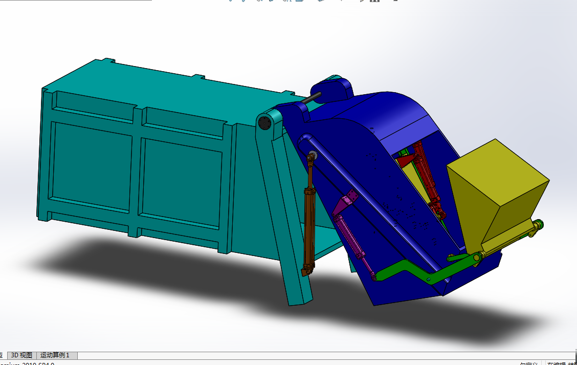 2 掌握其压缩装置动作原理,建立压缩垃圾车的整车的三维模型。