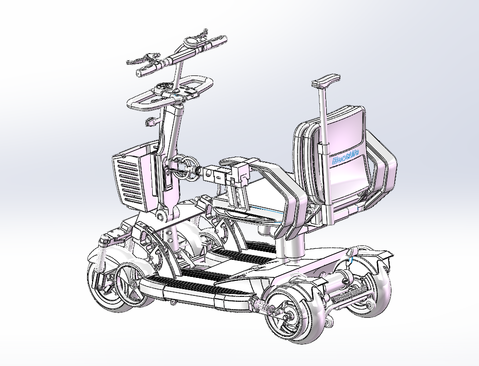 确定便携式电动代步车的整体方案。参考市面上现有的电动车,对包括车型设计以及各种零件选择等参数进行调整,然后使用SolidWorks进行三维建模。