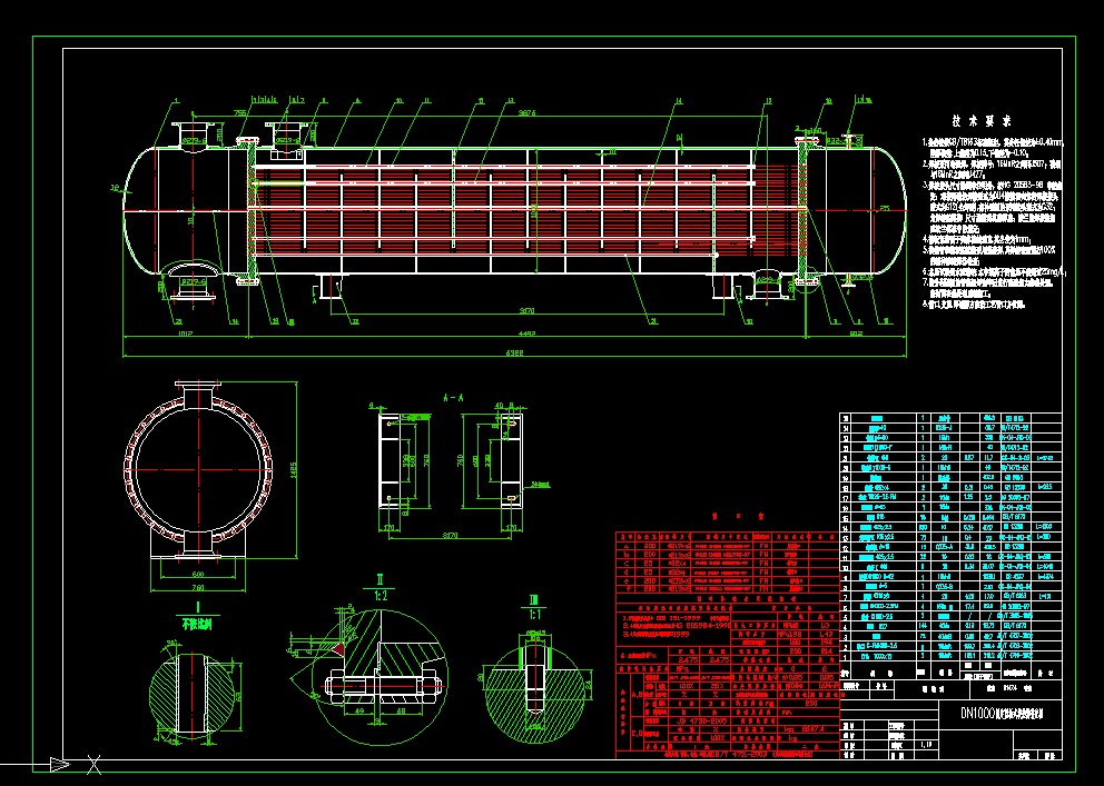 摘要:本课题详细介绍了换热器的设计与制造过程,它以流体的物性参数和生产量要求为基础,利用传热过程基本原理、通过计算确定固定管板式换热器的基本型式。依据GB150-1998《钢制压力容器》和GB151-1999《管壳式换热器》等标准对换热器各零部件结构与强度进行设计,包括筒体、管箱、封头、折流板及管板等,管板是连接壳体、管束和管箱,并承受压力和热膨胀以及来自此三部件载荷的主要部件。特别的,对于管板,我们分析了其危险截面应力并加以校核,保证其安全性。在加工制造方面,用简单的流程图将各零部件的加工与装配次序表现得清晰明了,对管子与管板的连接、管孔的加工提出了更详细具体的要求。