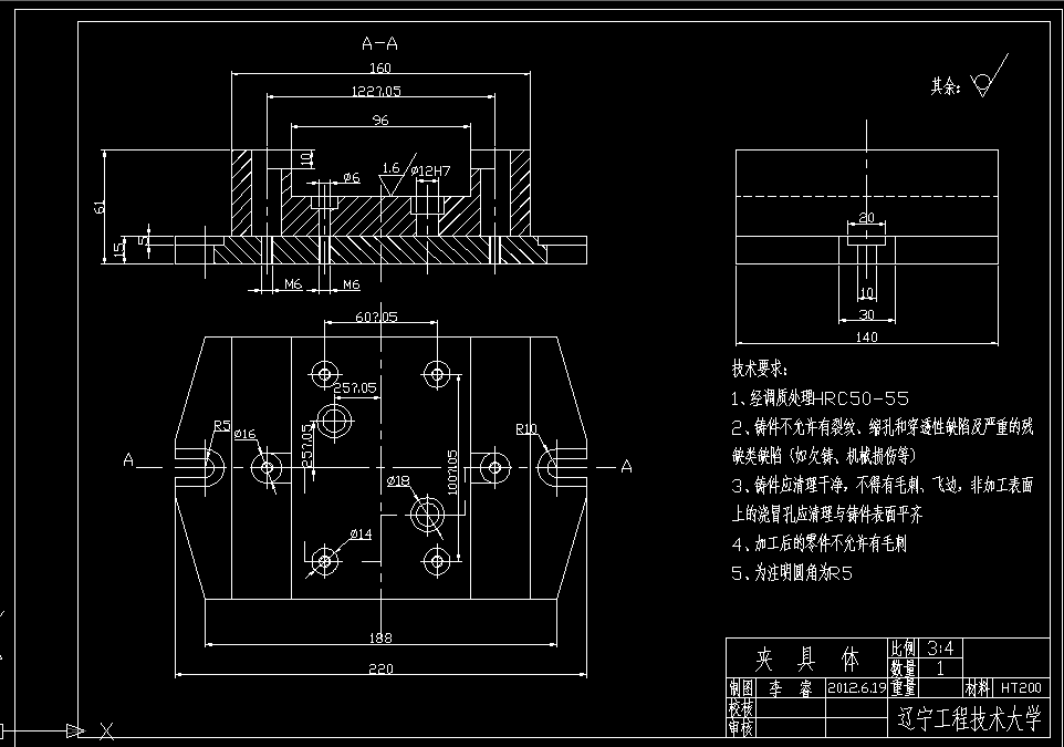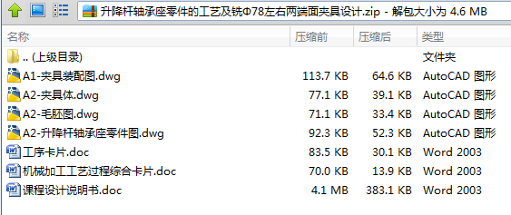 设计的内容是升降杆轴承座,主要包括两个部分,一是升降杆轴承座的加工工艺分析,二是针对于铣削 两端面工序进行加工的专用夹具的设计。设计内容为设计升降杆轴承座零件的机械加工工艺规程,并绘制出零件图、毛坯图、夹具体零件图和夹具装配图,填写机械加工工艺过程综合卡片和编制所设计夹具对应的那道工序的机械加工工工艺卡片,并编制课程设计说明书。