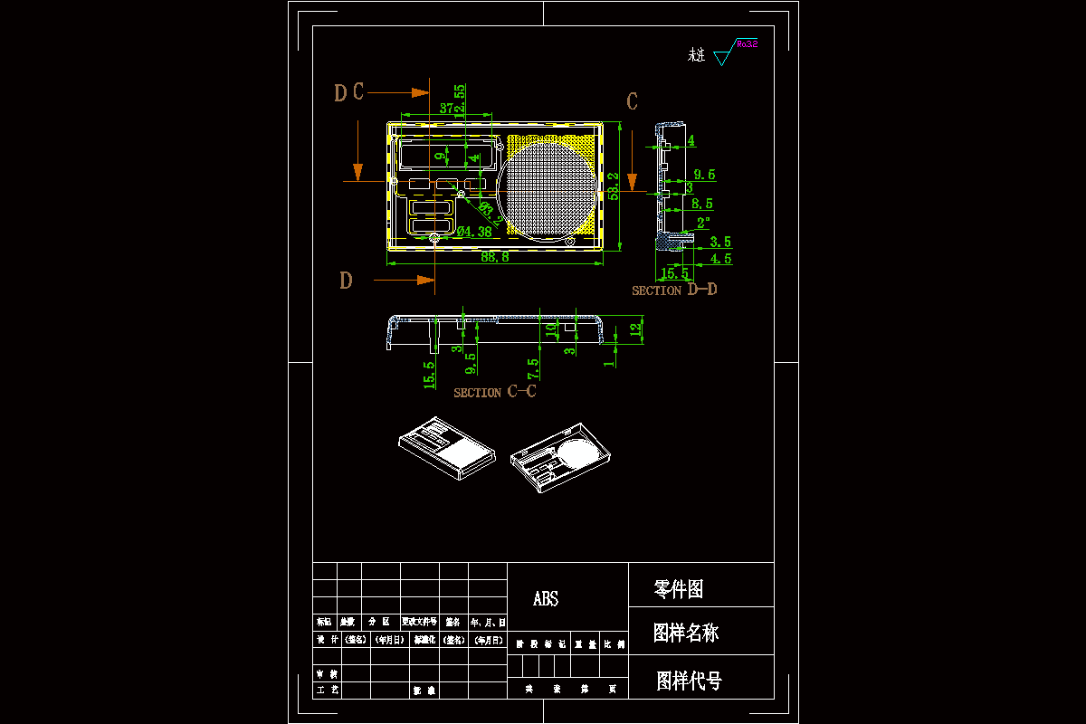 本次的产品名称为收音机壳它是生活中常见的塑件塑料产品,拿到产品以后需要用UG进行三维建模,产品壁厚比较均匀,适合中大批量生产,然后再分析该产品的特性特征,它的用途、作用以及它的结构特征怎么做,然后结合它在生活的用途和性能、以及结合材料的特性确定该产品的材料为ABS(高抗冲)。