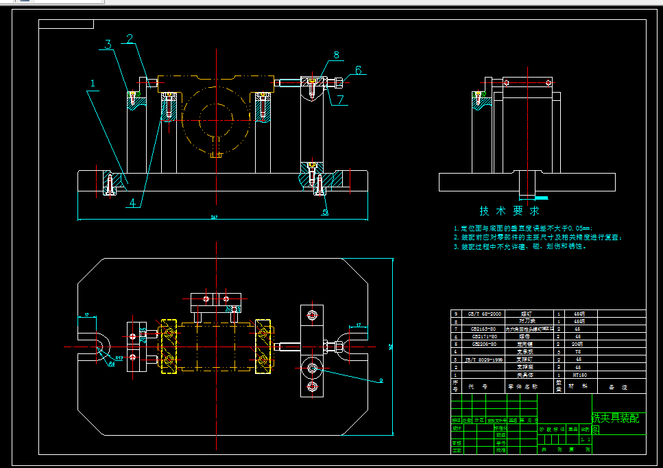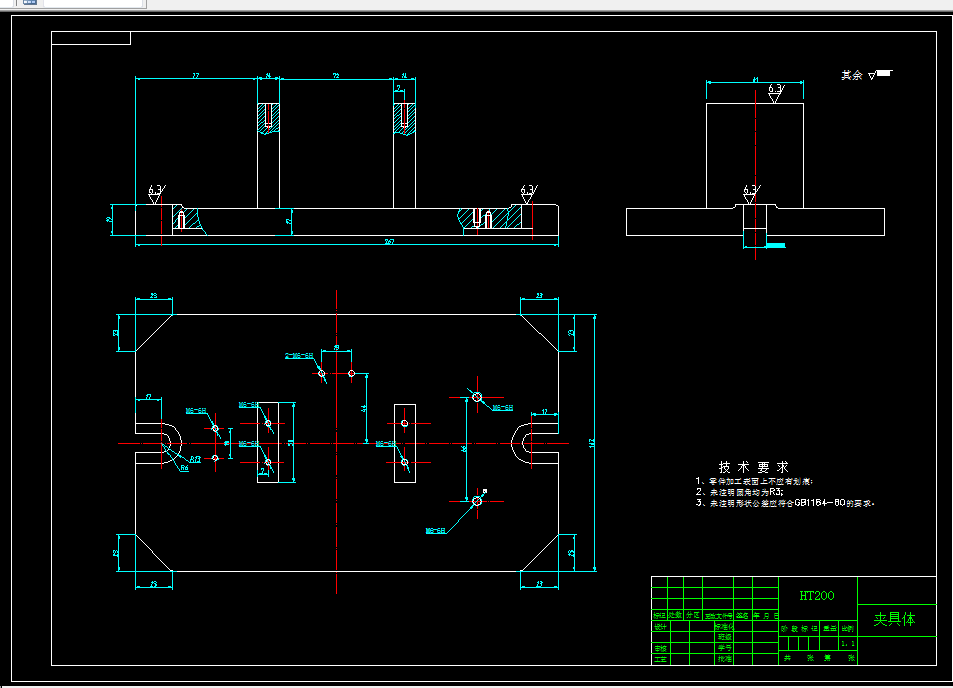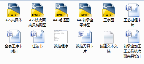 轴承座零件加工工艺及夹具设计是包括零件加工的工艺设计、工序设计以及专用夹具的设计三部分。在工艺设计中要首先对零件进行分析,了解零件的工艺再设计出毛坯的结构,并选择好零件的加工基准,设计出零件的工艺路线;接着对零件各个工步的工序进行尺寸计算,关键是决定出各个工序的工艺装备及切削用量;然后进行专用夹具的设计,选择设计出夹具的各个组成部件,如定位元件、夹紧元件、引导元件、夹具体与机床的连接部件以及其它部件;计算出夹具定位时产生的定位误差,分析夹具结构的合理性与不足之处,并在以后设计中注意改进。