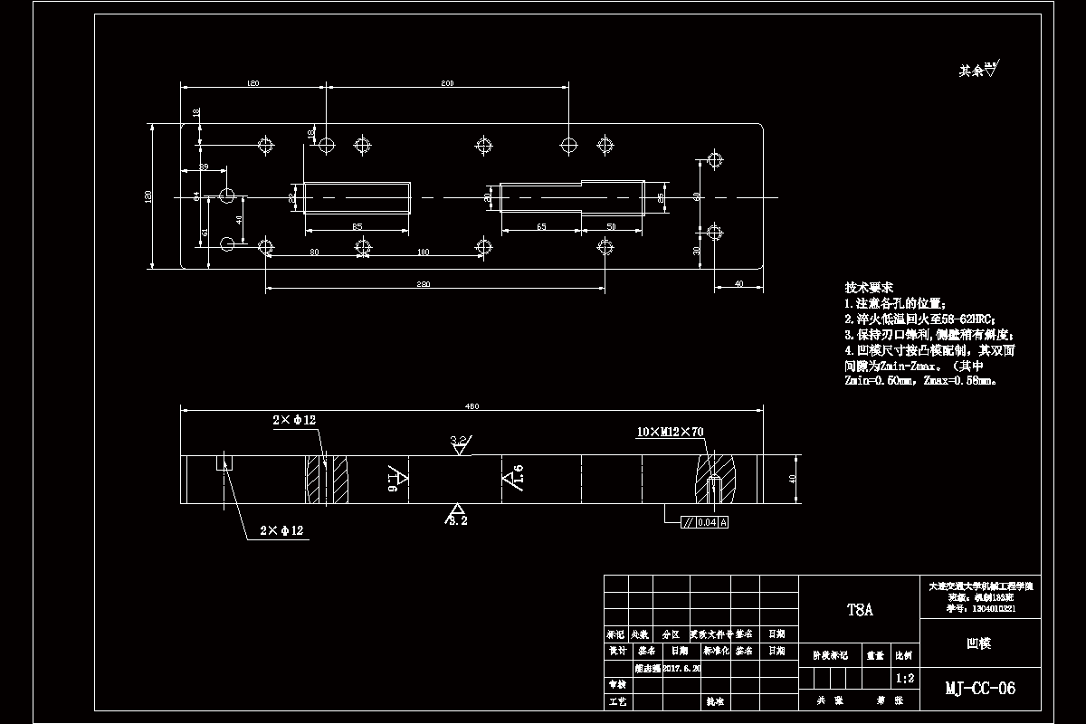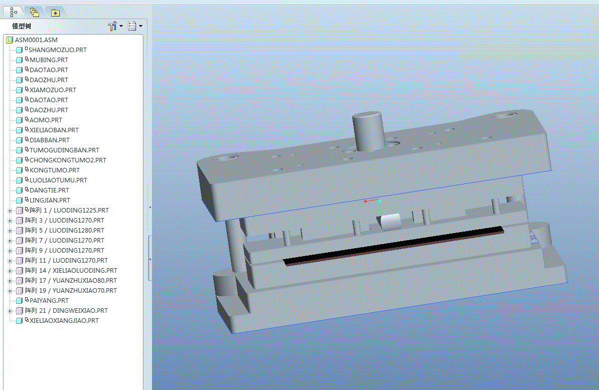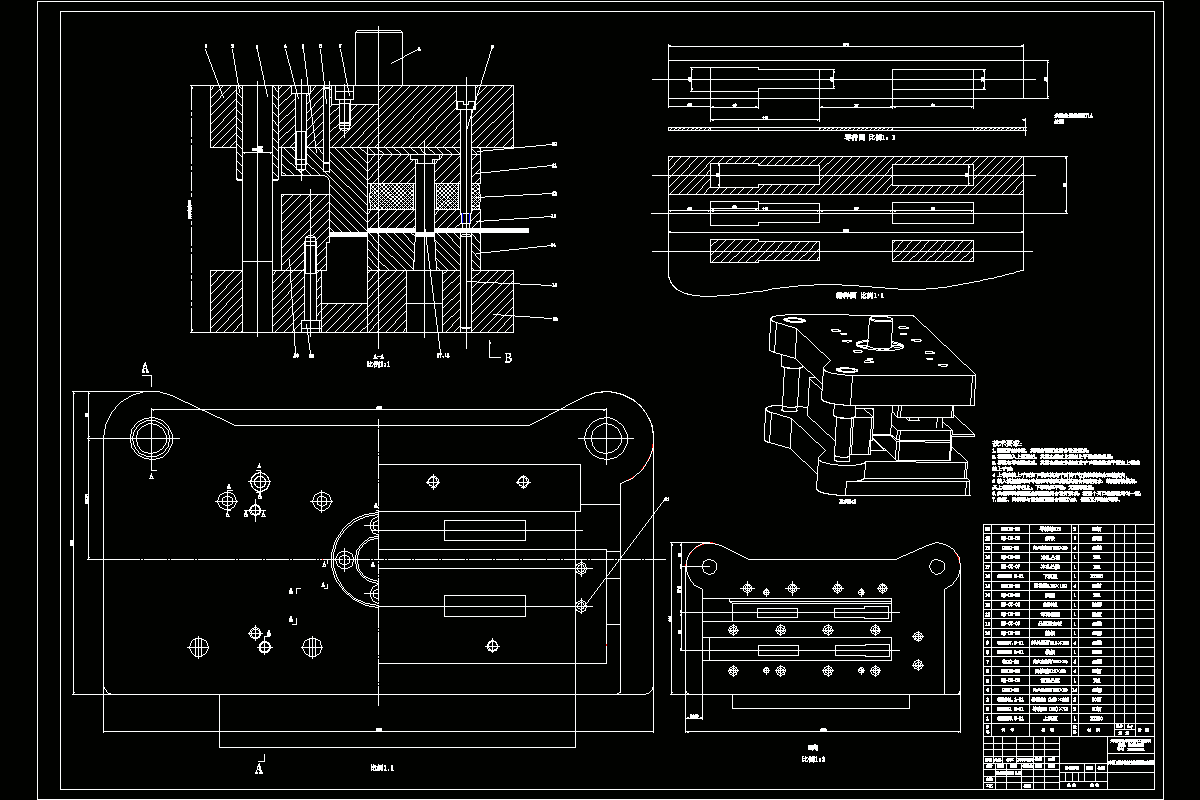 该是对客车车门垫板零件冲孔、落料的级进模设计。进行零件的形状、尺寸、精度工艺分析,确定合理的工艺方案,确定工序数目。确定毛坯尺寸,合理排样,绘制排样图。计算冲孔力、切断力、卸料力、推件力、总冲压力,确定压力中心。计算主要结构零件的尺寸。确定凸、凹模结构,并绘制零件图,设计定位零件,压料、卸料零部件。设计固定零件,选择其他标准件。最后用CAD和pro-e分别画出二维与三维装配图,三维图并生成爆炸图。