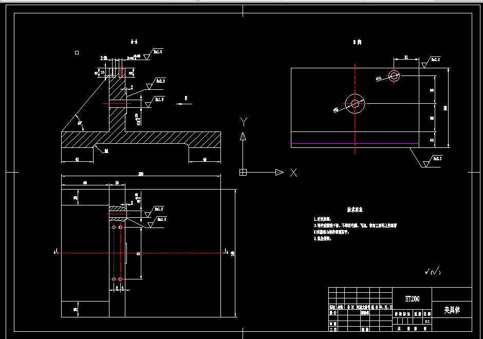 轴承座零件加工工艺及夹具设计是包括零件加工的工艺设计、工序设计以及专用夹具的设计三部分。在工艺设计中要首先对零件进行分析,了解零件的工艺再设计出毛坯的结构,并选择好零件的加工基准,设计出零件的工艺路线;接着对零件各个工步的工序进行尺寸计算,关键是决定出各个工序的工艺装备及切削用量;然后进行专用夹具的设计,选择设计出夹具的各个组成部件,如定位元件、夹紧元件、引导元件、夹具体与机床的连接部件以及其它部件;计算出夹具定位时产生的定位误差,分析夹具结构的合理性与不足之处,并在以后设计中注意改进。