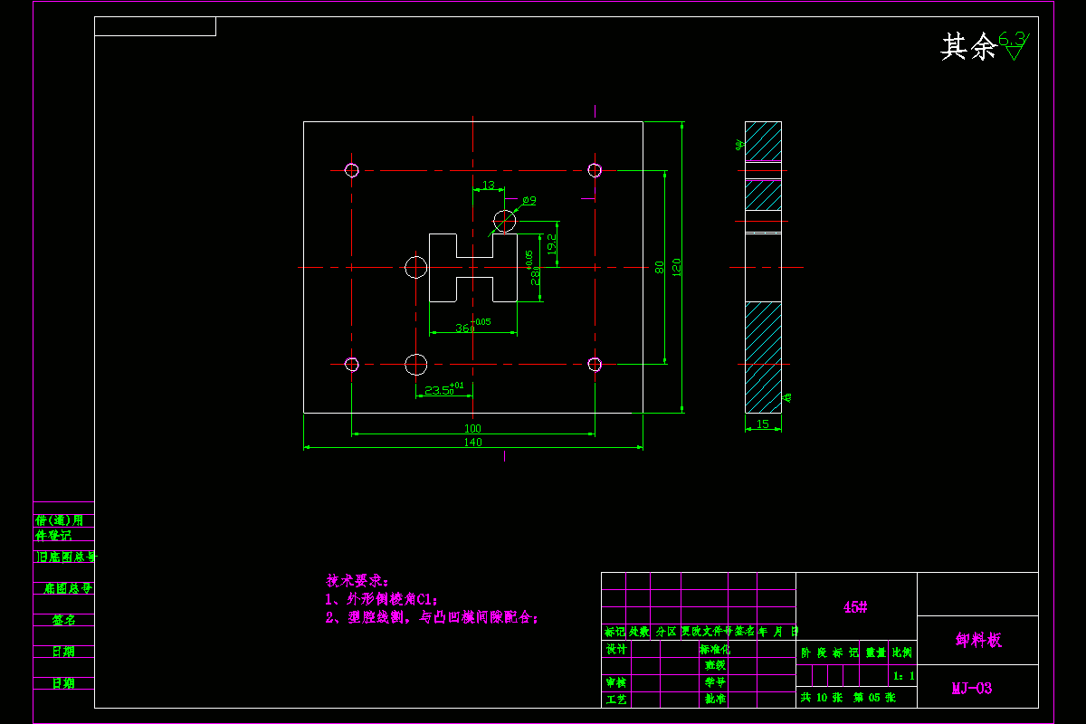 本次课程设计是完成方垫片冲压工艺及模具设计。采用落料、冲孔工艺。设计中分析了工件的冲压工艺性,计算了毛坯排样、冲压力、刃口尺寸计算等。进行了模具总体结构、主要零部件的设计,绘制了落料模的模具装配图和零部件图。