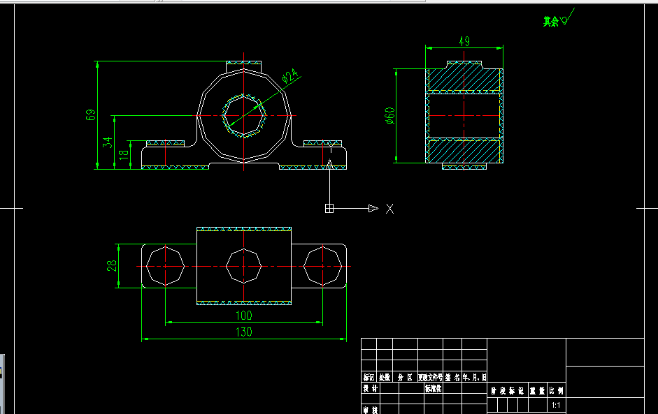 轴承座加工工艺规程及其钻孔的夹具设计是包括零件加工的工艺设计、工序设计以及专用夹具的设计三部分。在工艺设计中要首先对零件进行分析,了解零件的工艺再设计出毛坯的结构,并选择好零件的加工基准,设计出零件的工艺路线;接着对零件各个工步的工序进行尺寸计算,关键是决定出各个工序的工艺装备及切削用量;然后进行专用夹具的设计,选择设计出夹具的各个组成部件,如定位元件、夹紧元件、引导元件、夹具体与机床的连接部件以及其它部件;计算出夹具定位时产生的定位误差,分析夹具结构的合理性与不足之处,并在以后设计中注意改进。