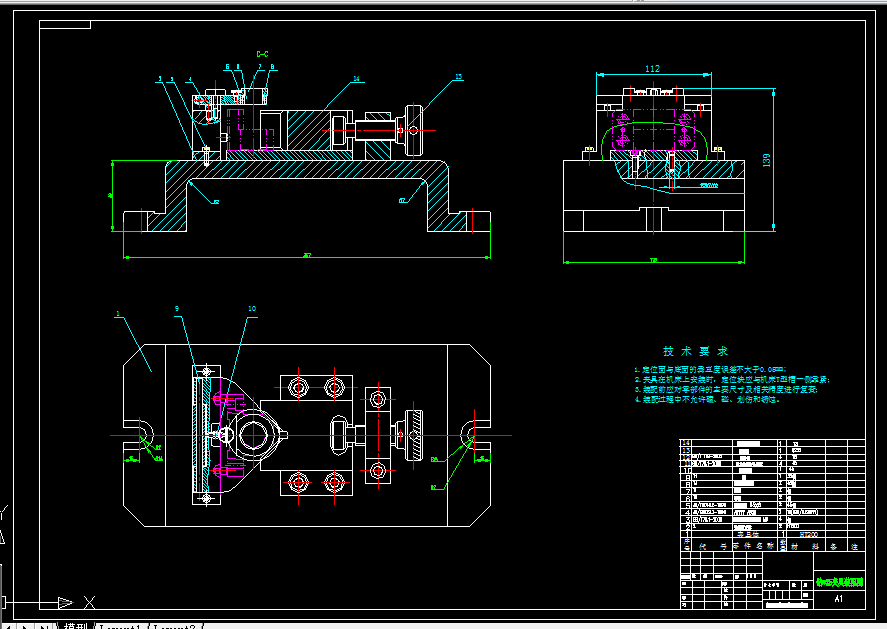 根据生产、技术条件和对产品的使用要求,从工艺的角度出发,对零件图样进行如下 内容的审查:零件图样的视图、尺寸、公差和技术要求的完整性与正确性;加工要求的合理 性;零件结构的工艺性等。