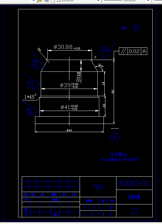 摘要:设计着重介绍了工件的成型工艺,及模具结构设计。通过对工件的工艺分析,确定了工艺方案。并设计了一套正装复合模具。在设计同时利用参考资料,确定了各工作零件的尺寸。并较多的考虑了模具结构的调整性、易更换性及模具成本。同时在模具设计内容中融汇了冲压模具的不同加工方法、加工工艺及装配工艺,对初学冲压模具模设计者有一定的参考价值。本设计从模具设计到零部件的加工工艺以及装配工艺等进行详细的阐述,并应用CAD进行各重要零件的设计。