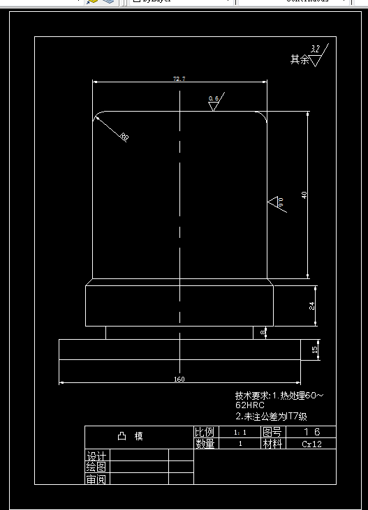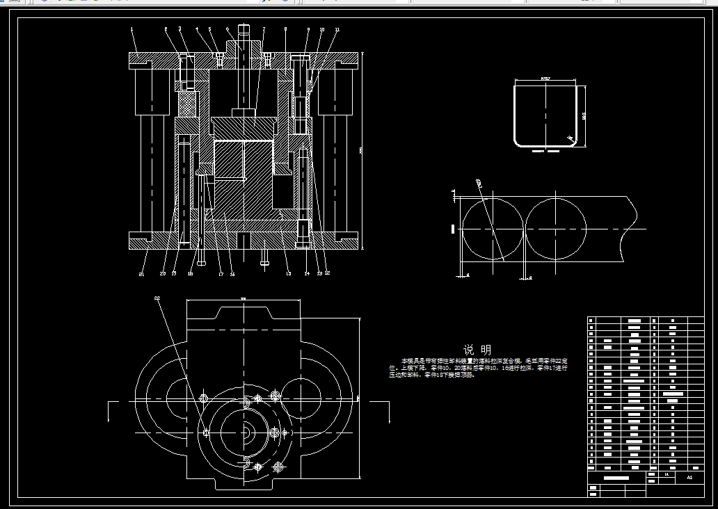 系统介绍了工件的成形工艺及模具成型结构对工件质量的影响分析,模具成型部分和总装结构的设计。介绍了圆筒拉深模具设计时要注意的要点,并较多的考虑了模具结构的调整性、易更换性及模具成本。从控制制件尺寸精度出发,对圆筒拉深模具的各主要尺寸进行了理论计算,以确定各工作零件的尺寸,从模具设计到零部件的加工工艺以及装配工艺等进行详细的阐述,并应用CAD进行各重要零件的设计。