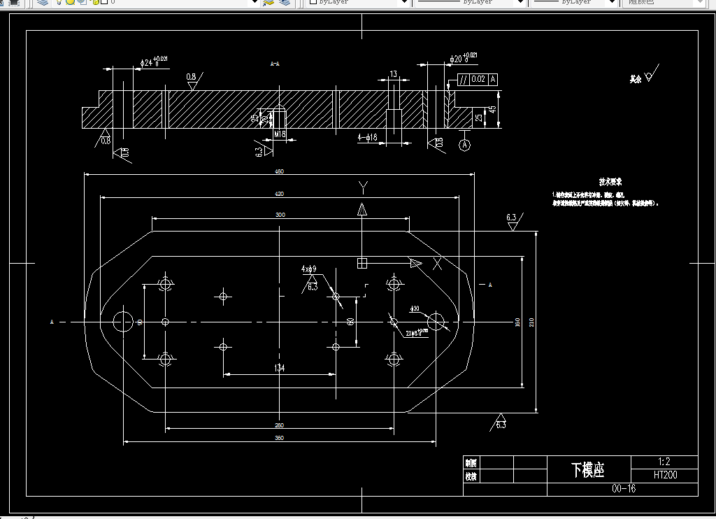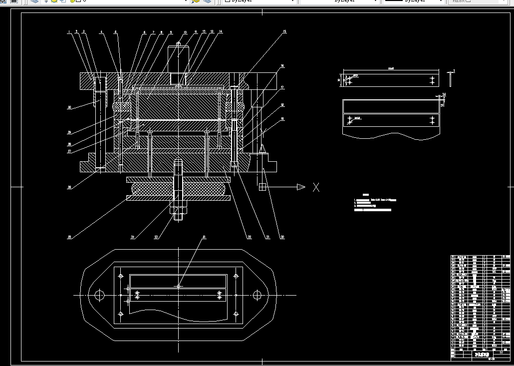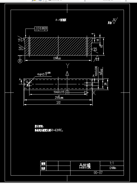 凹模采用整体式凹模,各冲裁的凹模孔均采用线切割机床加工,安排凹模在模架上的位置时要依据计算压力中心与模柄中心重合。