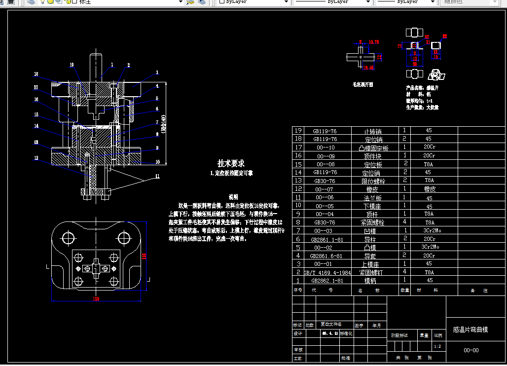 5.5 弯曲模具总装图…………………………………………………………………22
