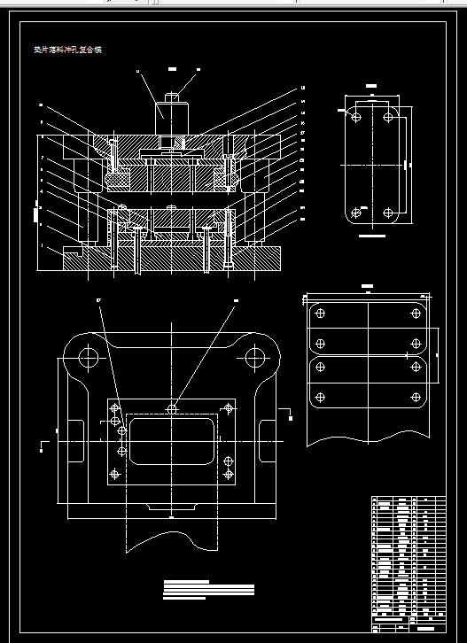 本模具为垫片落料冲孔模具, 在设计时:1 、接受任务书。2 、调研消化原始资料。3 、选择成形设备。4 、拟定模具结构方案。5 、方案的讨论与论证。6 、绘制模具装配图。7 、绘制零件图。8 、编写设计说明书。9 、模具制造试模与图纸修改。正确的确定模具成形零件的尺寸凸模、凹模等零件是确定制件形状、尺寸和表面质量的直接因素关系甚大,要特别注意。模具的设计应制造方便, 尽量做道使设计的模具制造容易、造价便宜。特别是比较复杂的成形零件,必须考虑是采用一般的机械加工方法加工还是采用特殊的加工方法加工。模具的设计应当效率高、安全、可靠。模具零件应耐磨耐用。