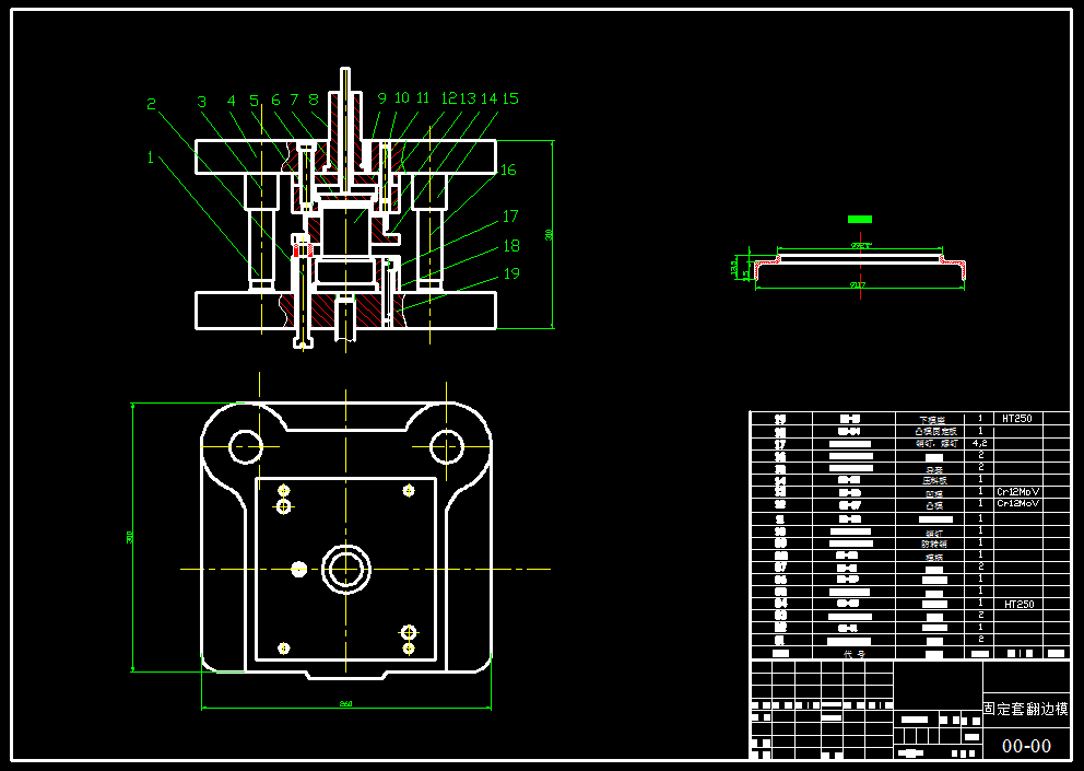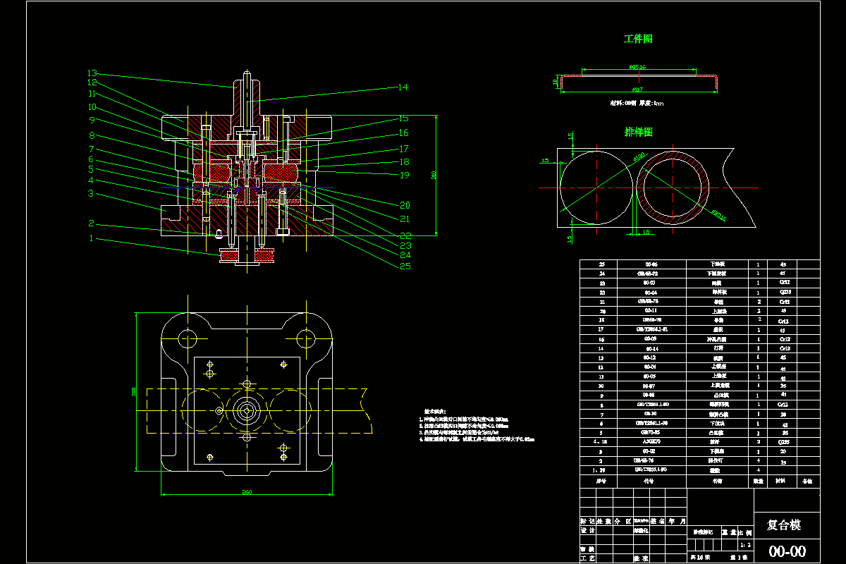 设计着重介绍了制件的成型工艺,及模具结构设计。通过对制件的工艺分析,确定了工艺方案。并设计了一套倒装复合模具。在设计同时利用参考资料,确定了各工作零件的尺寸。并较多的考虑了模具结构的调整性、易更换性及模具成本。同时在模具设计内容中融汇了冲压模具的不同加工方法、加工工艺及装配工艺,对初学冲压模具模设计者有一定的参考价值。本设计从模具设计到零部件的加工工艺以及装配工艺等进行详细的阐述,并应用CAD进行各重要零件的设计。