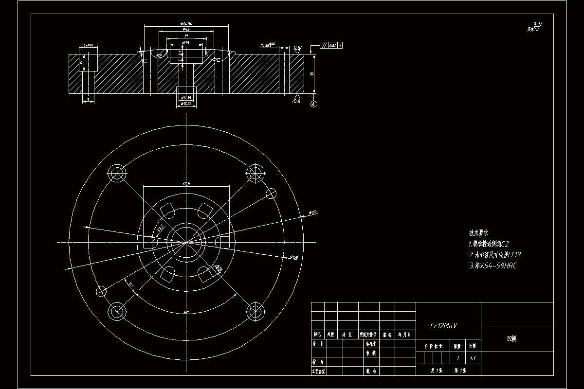 分析了设计课题尺寸、形状、结构成形工艺,工件由冲孔、落料、拉深、翻边等工艺构成,冲裁件结构难度中等,比较适合作为设计的课题,根据工件图纸上的技术要求,冲裁件尺寸精度、表面质量、生产批量、冲裁件材料力学性能等,综合分析,决定采用复合模具。设计方案结束后开始做棑样设计,计算材料利用率,冲裁力,弯曲力,冲裁间隙压力中心的,选取冲压设备,绘制装配草图、装配图、主要工作零件的技术图纸,最后编写设计说明书准备答辩。