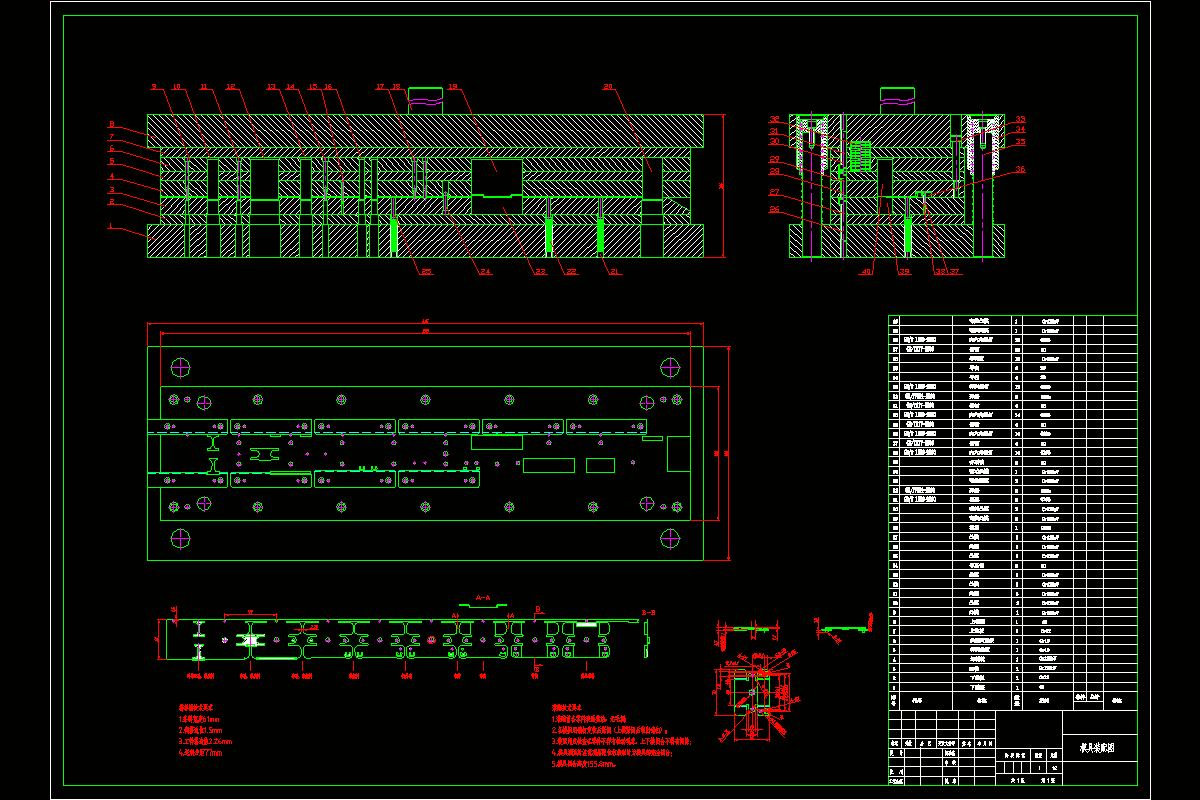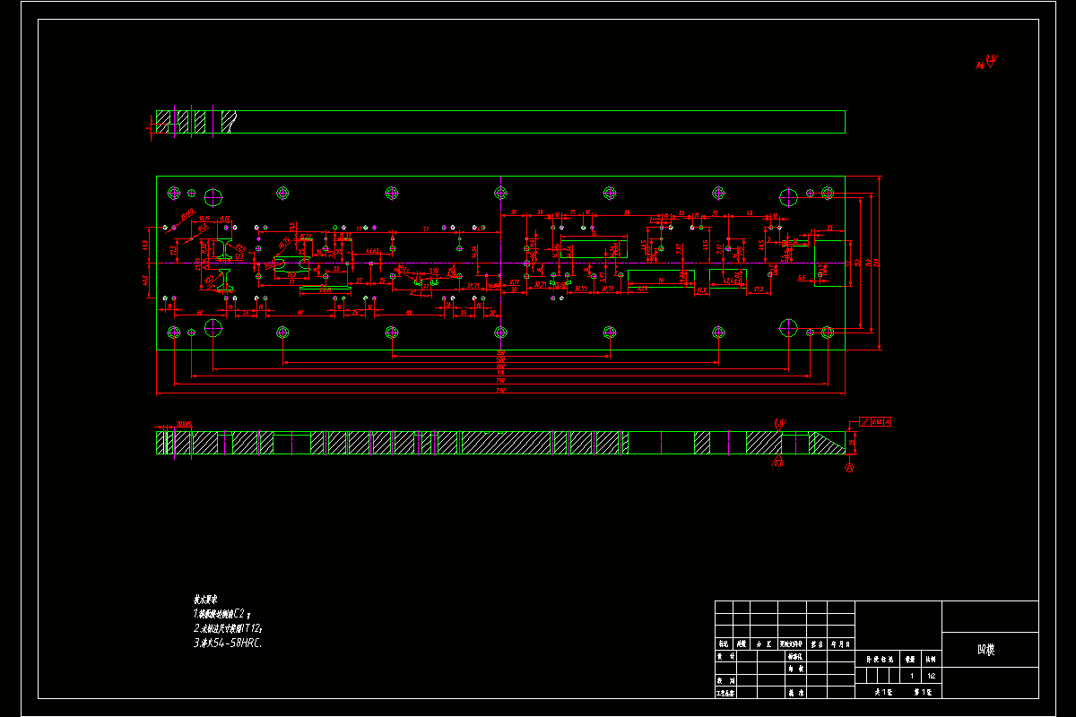 从工件结构分析,工件有冲孔、落料、弯曲、翻边、胀形等工艺组成,工件上多个地方弯曲,工件形状具备对称性。模具的设计的设计先从工件的工艺结构出发,确定生产批量,根据工件图只要求和形状来确定模具的设计方案,进步一确定模具制造精度等级,排样设计从而确定出模具的类型结构,从实际生产的角度出发,为了节约模具制造成本,提高产品生产效率,保证工件的生产精度,该工件的冲裁模具设计方案采用了级进模具冲裁。在模具设计前主要查找工件图纸中未标注公差的尺寸公差,根据尺寸公差来确定模具制造的精度,经过多次的排样分析以后,开始进行模具的结构设计,计算模具的闭合高度、卸料力、冲裁力、、冲裁间隙、模具装配配合间隙、凸模高度、压力中心、模具总压力,根据总冲压力选择冲压设备;所有的设计方案确定以后开始绘制模具草图、装配图、零件图、编写技术要求、设计说明书。