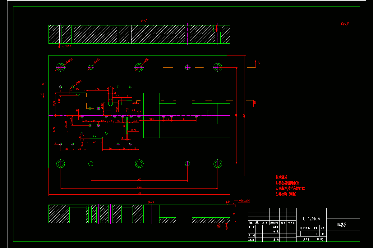 从工件结构分析,工件有冲孔、落料、弯曲等工艺组成,工件形状具备对称性。模具的设计的设计先从工件的工艺结构出发,根据工件图只要求和形状来确定模具的设计方案,进步一确定模具制造精度等级,和排样设计从而确定出模具的类型结构,从实际生产的角度出发,为了节约模具制造成本,提高产品生产效率,保证工件的生产精度,该工件的冲裁模具设计方案采用了级进模具冲裁。在模具设计前主要查找工件图纸中未标注公差的尺寸公差,根据尺寸公差来确定模具制造的精度,经过多次的排样分析以后,开始进行模具的结构设计,计算模具的闭合高度、卸料力、冲裁力、、冲裁间隙、模具装配配合间隙、凸模高度、压力中心、模具总压力,根据总冲压力选择冲压设备;所有的设计方案确定以后开始绘制模具草图、装配图、零件图、编写技术要求、设计说明书。