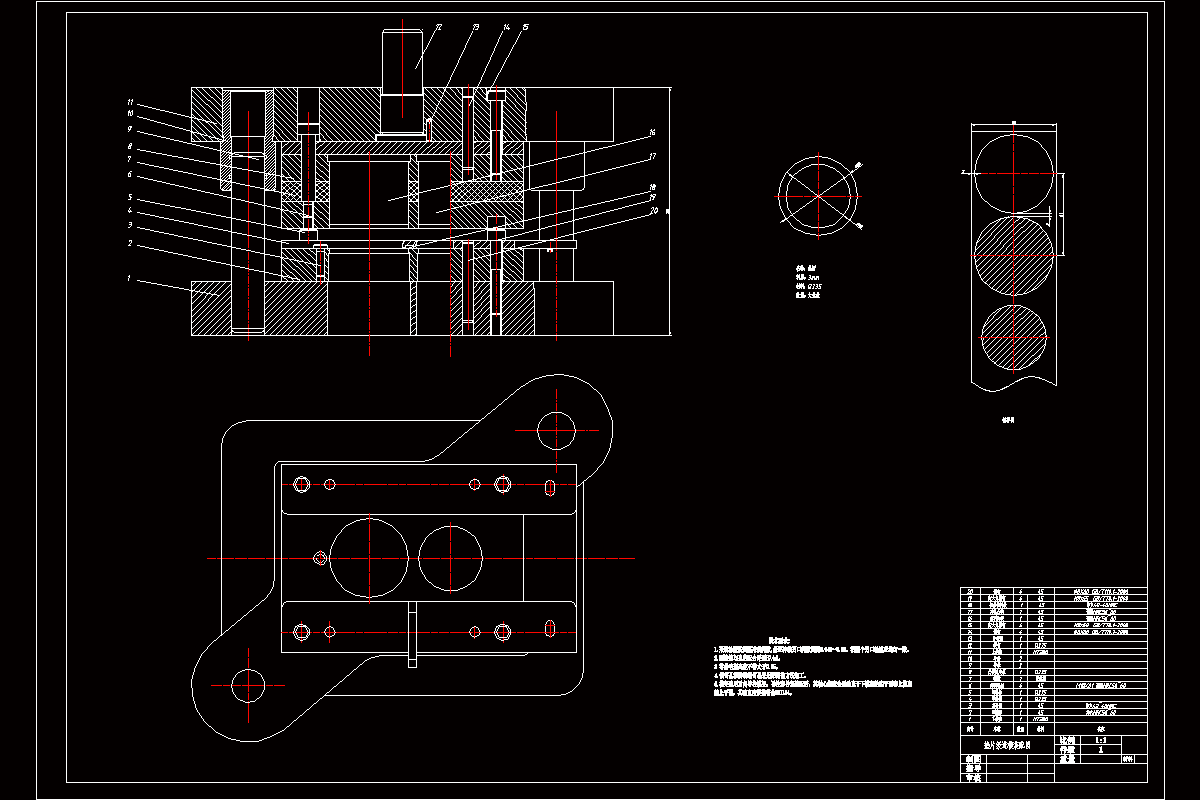 本次设计的是垫圈冲孔落料级进模,设计的内容包括工件的工艺分析和工艺方案的确定,冲裁工艺计算(条料宽度计算、排样图的设计、冲裁方式、总的冲压力计算及压力中心的确定、刃口尺寸、冲裁间隙计算),冲裁模主要零部件的结构设计(凸模、凹模结构设计、定位零件的设计与标准、卸料装置设计、凸模固定板与垫板的设计、其它冲模零件结构的设计等),模具标准模架的选用及闭合高度的确定,该采用何种送料方式,还有始用挡料装置的设计等一整套的设计步骤。