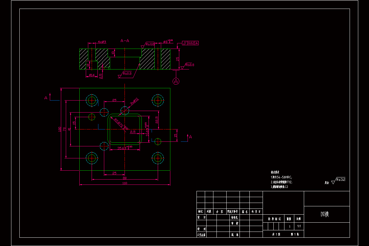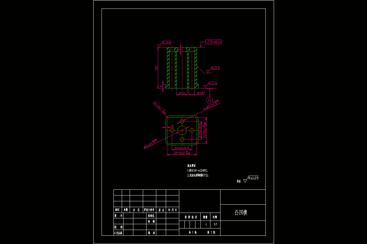 从工件垫片结构分析,该工件轮廓结构由直线圆弧相切,工件形状具备对称性。模具的设计的设计先从工件的工艺结构出发,根据工件图只要求和形状来确定模具的设计方案,进步一确定模具制造精度等级,和排样设计从而确定出模具的类型结构,从实际生产的角度出发,为了节约模具制造成本,提高产品生产效率,保证工件的生产精度,该工件的冲裁模具设计方案采用了复合模具冲裁。在模具设计前主要查找工件图纸中未标注公差的尺寸公差,根据尺寸公差来确定模具制造的精度,经过多次的排样分析以后,开始进行模具的结构设计,计算模具的闭合高度、卸料力、冲裁力、、冲裁间隙、模具装配配合间隙、凸模高度、压力中心、模具总压力,根据总冲压力选择冲压设备;所有的设计方案确定以后开始绘制模具草图、装配图、零件图、编写技术要求、设计说明书。