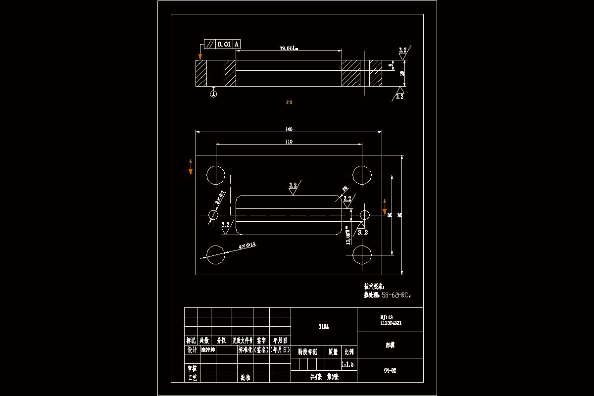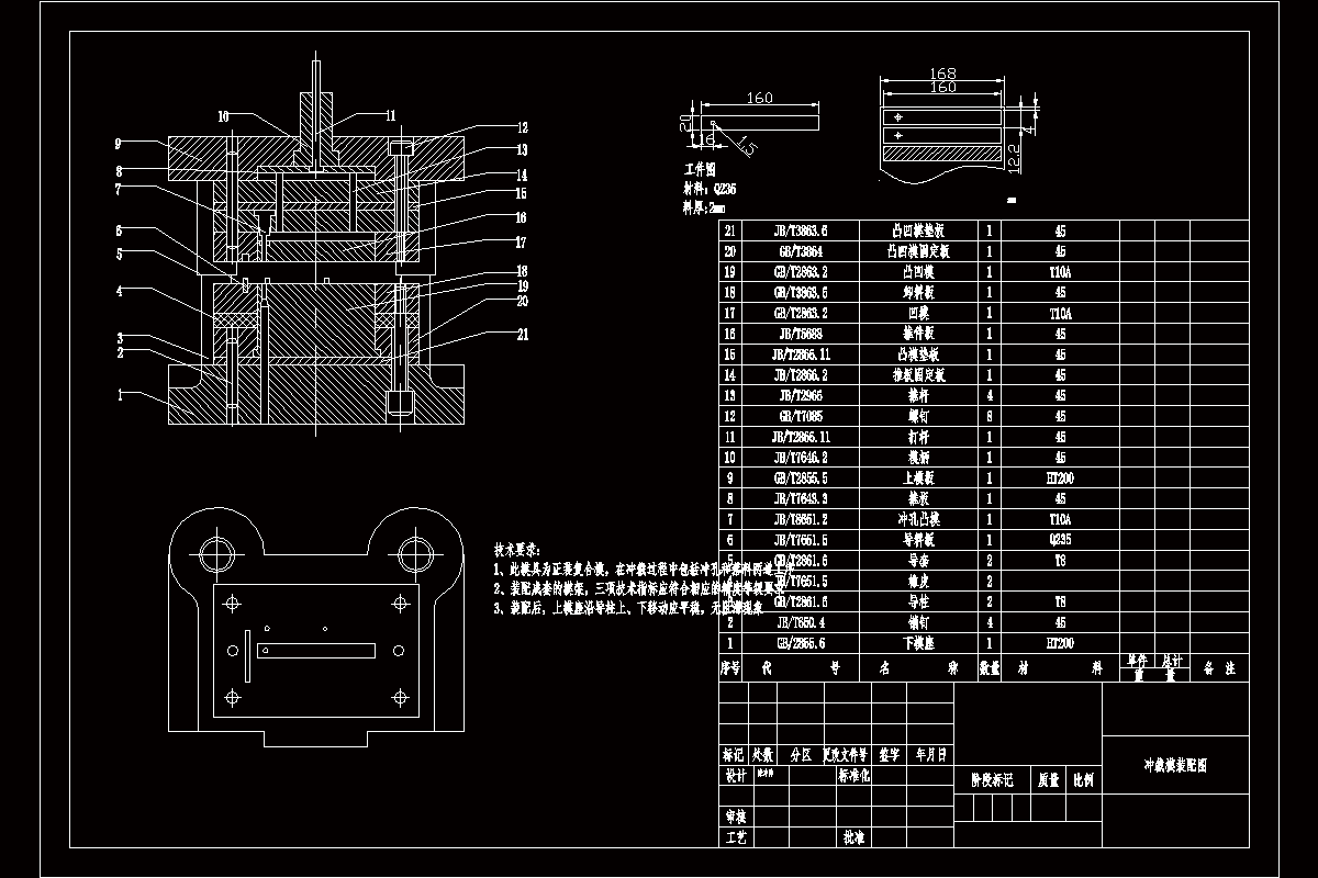 从工件垫片结构分析,该工件轮廓结构由直线圆弧相切,工件形状具备对称性。模具的设计的设计先从工件的工艺结构出发,根据工件图只要求和形状来确定模具的设计方案,进步一确定模具制造精度等级,和排样设计从而确定出模具的类型结构,从实际生产的角度出发,为了节约模具制造成本,提高产品生产效率,保证工件的生产精度,该工件的冲裁模具设计方案采用了复合模具冲裁。在模具设计前主要查找工件图纸中未标注公差的尺寸公差,根据尺寸公差来确定模具制造的精度,经过多次的排样分析以后,开始进行模具的结构设计,计算模具的闭合高度、卸料力、冲裁力、、冲裁间隙、模具装配配合间隙、凸模高度、压力中心、模具总压力,根据总冲压力选择冲压设备;所有的设计方案确定以后开始绘制模具草图、装配图、零件图、编写技术要求、设计说明书。