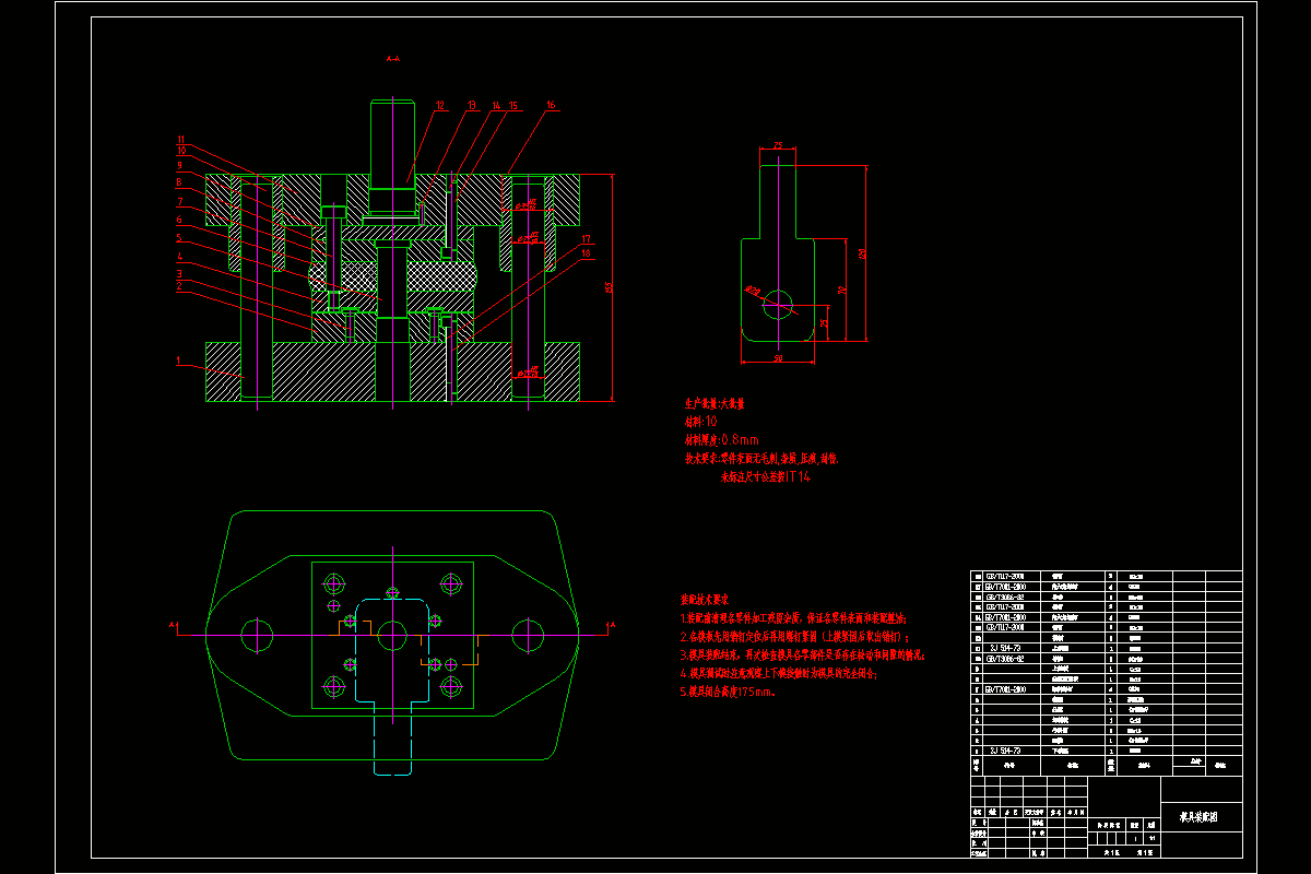 冷冲压模具结构简单实用,使用方便可靠,根据此次课程设计衬片冲孔模具设计,要求采用单工序模具冲压,这样有利于简化模具结构,节约模具的制造材料和设计周期。分析该零件的排样形式得出材料利用率,绘制排样图。计算冲裁力、压力中心和刃口尺寸,再进行整体设计。当所有的参数计算完后,对模具的装备方案,主要零件的设计和装备技术要求进行分析。设计出主要零部件,再对标准件进行选取和加工制造。最后选择压力机,校核压力机是否合格。在设计过程中除了设计说明书外,还包括模具的装配图和主要工作零件图。