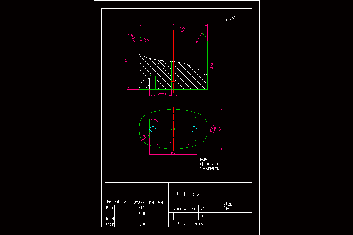 根据指导老师安排的设计课题,课题名称为矩形罩复合模具设计。从课题所给定的零件图,结合工件的形状,分析工件的工艺类型、并选择合理的冲压方案;查阅相关的资料,计算出工件的展平坯料尺寸,查表得出排样的搭边值;计算模具的总冲压力和压力中心,选择压力机型号;进行模具的结构设计、绘制模具装配图、零件图、撰写设计说明书。