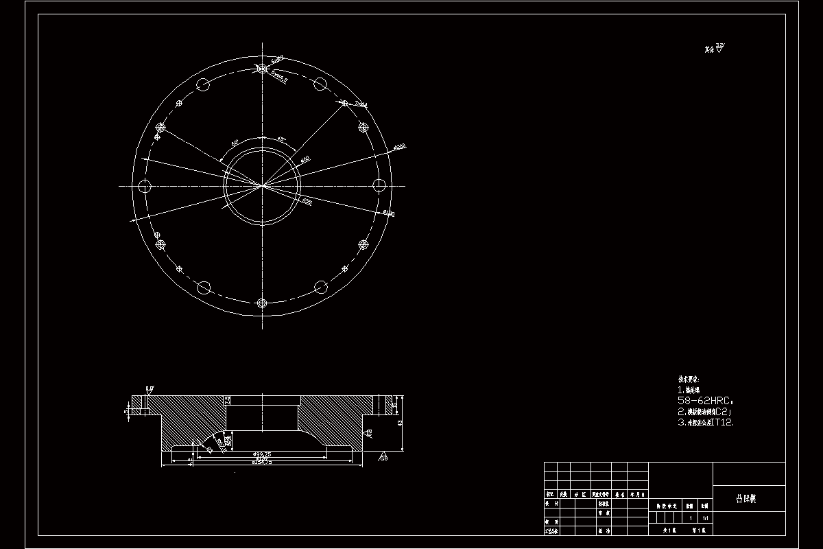 根据指导老师安排的设计冲裁件,从课题所给定的零件图,结合其外形结构和尺寸得知,冲裁件的外形为有规则拉深旋转体,底部为圆形冲孔,由此得知冲裁件由冲孔、落料、拉深等工艺构成。拿到老师制定课题以后,首先分析工件的工艺类型,根据工件的尺寸,分析并选择适合的设计方案;其次,进行模具的棑样设计,查阅相关的资料,计算工件的坯料尺寸,合理选择排样的搭边值;最后,计算模具的压力中心和冲压力,选择相对应的压力机;最后选择模具常用标准间,绘制模具总装图及零件图并编写设计说明书。除此之外,结合工件的结构,从生产的角度出发,为了节约模具制造成本,提高产品生产效率,保证工件的生产精度,该工件的冲裁模具设计方案采用了一副复合模具。在模具设计前主要查找工件图纸中未标注公差的尺寸公差,根据尺寸公差来确定模具制造的精度,经过多次的排样分析以后,开始进行模具的结构设计。