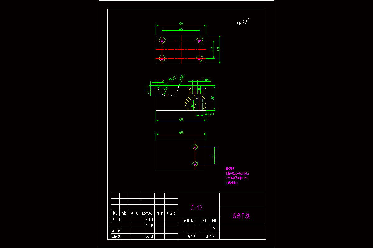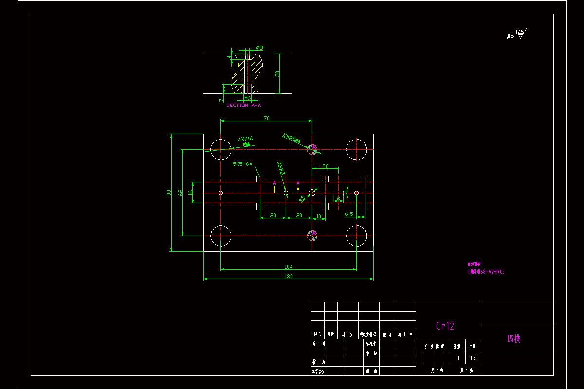 动触头自动级进模具是将是将原材料套在料架上,通过轧辊压平,自动送料进入模具重生产,模具内内设置光电感应,自动识别模内卡件的情况,利用万向吹风气器,自动将生产完成的工件吹入产品框内;工件的排样采用了无搭边的排样方案,材料利用率进一步的得到提升。在模具设计前主要查找工件图纸中未标注公差的尺寸公差,根据尺寸公差来确定模具制造的精度,经过多次的排样分析以后,开始进行模具的结构设计。