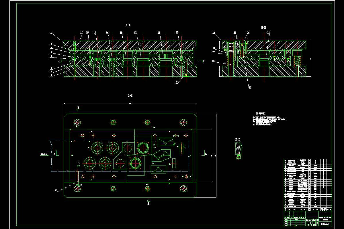 设计中可分为三大部分完成本次电机定子转子片多工位级进模的设计。第一部分概述了该设计的背景知识,其内容为级进模的发展,工业生产效率的提高,电机定子转子片的大批量生产要求;第二部分计算和优化结构设计。主要内容包括工艺计算,制定最优排样、在此基础上对凸、凹工作部分尺寸计算,根据设计要求选择或设计相应的标准件和非标准件。第三部分对本次设计进行总结,归纳模具设计目的、工作条件、生产要求,并使用AutoCAD软件完成模具装配图和零部件零件图的绘制。