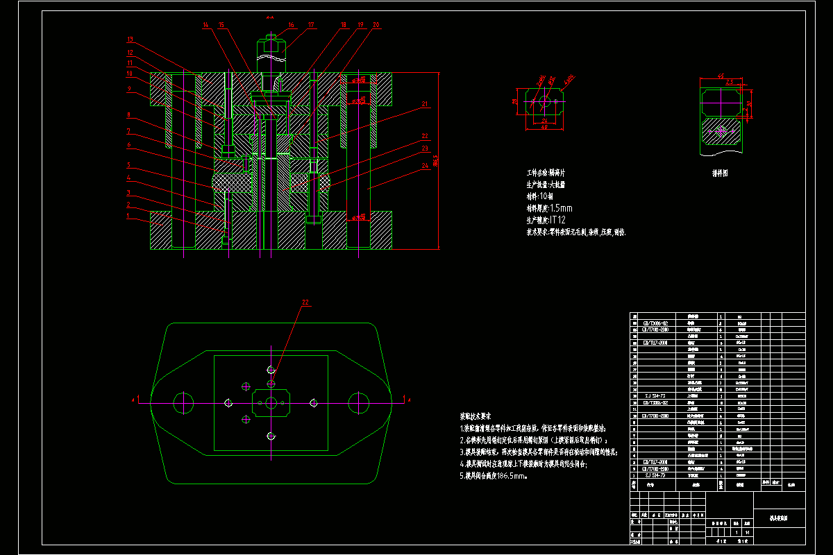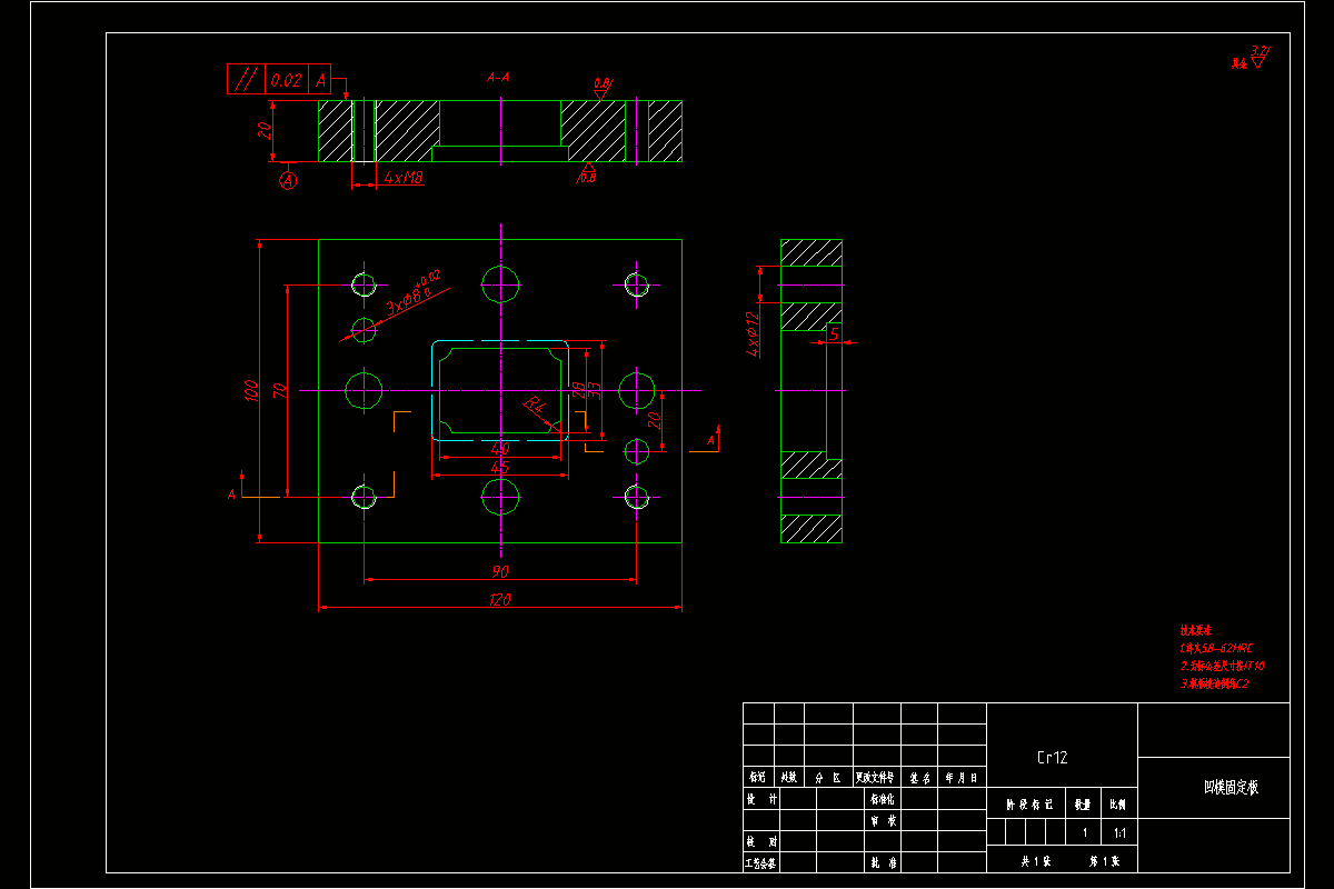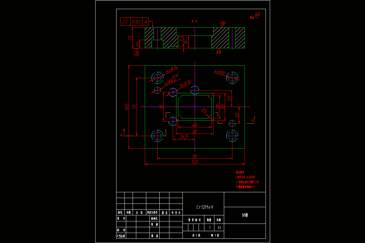 从工件结构分析,该工件轮廓结构由直线圆弧相切,工件形状具备对称性。模具的设计的设计先从工件的工艺结构出发,根据工件图只要求和形状来确定模具的设计方案,进步一确定模具制造精度等级,和排样设计从而确定出模具的类型结构,从实际生产的角度出发,为了节约模具制造成本,提高产品生产效率,保证工件的生产精度,该工件的冲裁模具设计方案采用了复合模具冲裁。在模具设计前主要查找工件图纸中未标注公差的尺寸公差,根据尺寸公差来确定模具制造的精度,经过多次的排样分析以后,开始进行模具的结构设计,计算模具的闭合高度、卸料力、冲裁力、冲裁间隙、模具装配配合间隙、凸模高度、压力中心、模具总压力,根据总冲压力选择冲压设备;所有的设计方案确定以后开始绘制模具草图、装配图、零件图、编写技术要求、设计说明书。