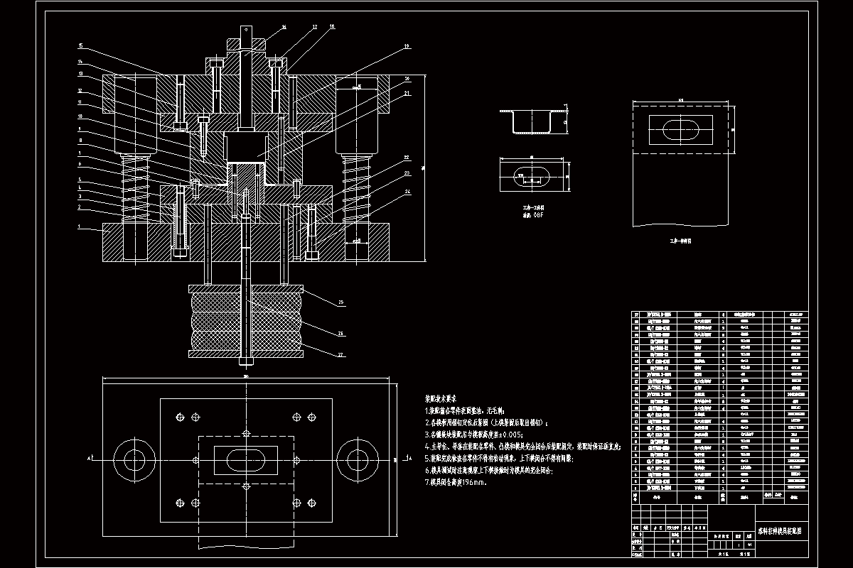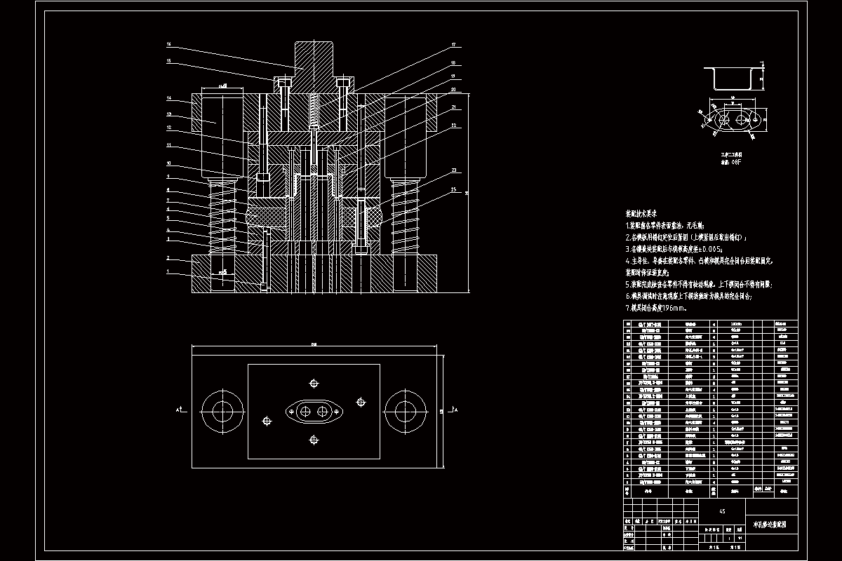 从课题工件本身的结构分析,工件外轮廓弧线相切,弧线感强且美观,属于非圆形筒件,工件底部和两侧由两对对称圆孔构成,因此由冲孔、拉深、落料等工艺生产而成;产品多工艺,结构较难,从实际生产的角度出发,为了节约模具制造成本,更好的控制工件的生产尺寸,工件的模具设计方案采用了冲孔落料两幅模具。在模具设计前主要分析计算工件的毛坯,查找图纸中未标注公差的尺寸公差,根据产品的公差来确定模具制造的精度;精确的计算工件的相关参数决定于模具的设计制造是否能投入生产、节约制造成本有着密切的关系;经过多次的工件工艺分析和参数计算,开始进行模具的结构设计,其中需要计算模具本身的相关参数,例如模具的闭合高度、卸料力、冲裁力、拉深力、冲裁间隙、拉深间隙、模具装配配合间隙、凸模高度、压力中心、模具总压力;所有的设计方案确定以后开始绘制模具草图、装配图、零件图、编写加工说明、制造工艺、技术要求。