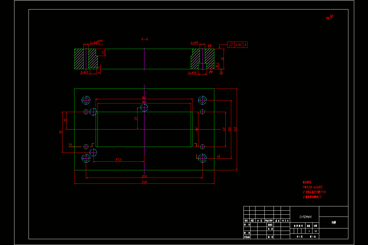 双长孔连接片的冲压件由冲孔、落料工艺构成,工件外轮廓为矩形,工件内轮廓为两个周长、体积相等的椭圆,所以工件具备轴对称和中心对称。因此模具的设计和排样从冲孔、落料、等工艺分析出发,工件工艺少,但工件尺寸较多,需要考虑各孔位冲裁时对其他孔的影响情况,查阅相关设计手册,工件是否符合冲裁加工。从实际生产的角度出发,为了节约模具设计、用材、制造成本,提高工件生产效率和尺寸精度,综合分析该工件的模具设计方案采用了复合模具冲裁。在模具设计前主要分析个尺寸轮廓工艺的受力情况,查找未标注公差的尺寸公差,根据尺寸公差来确定模具制造的精度,确定排样方案和条料的宽度,选取模架结构,计算模具的冲裁间隙、压力中心、模具闭合高度和冲压力的综合,再一步的选取相对应的冲压设备。