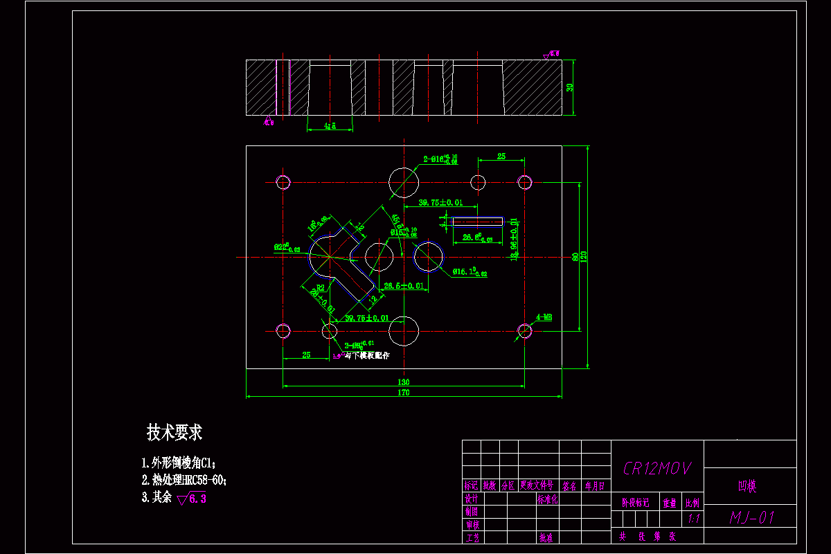 设计是在模具专业理论教学之后进行的实践性教学环节。也是我们对所掌握知识的一次检验,是工作之前的亲自操作。其目标是,将所有学过课程的理论与实践知识相结合起来,熟悉使用CAD等软件,自主完成设计模具的训练,从而提高自己的的实际工作能力。