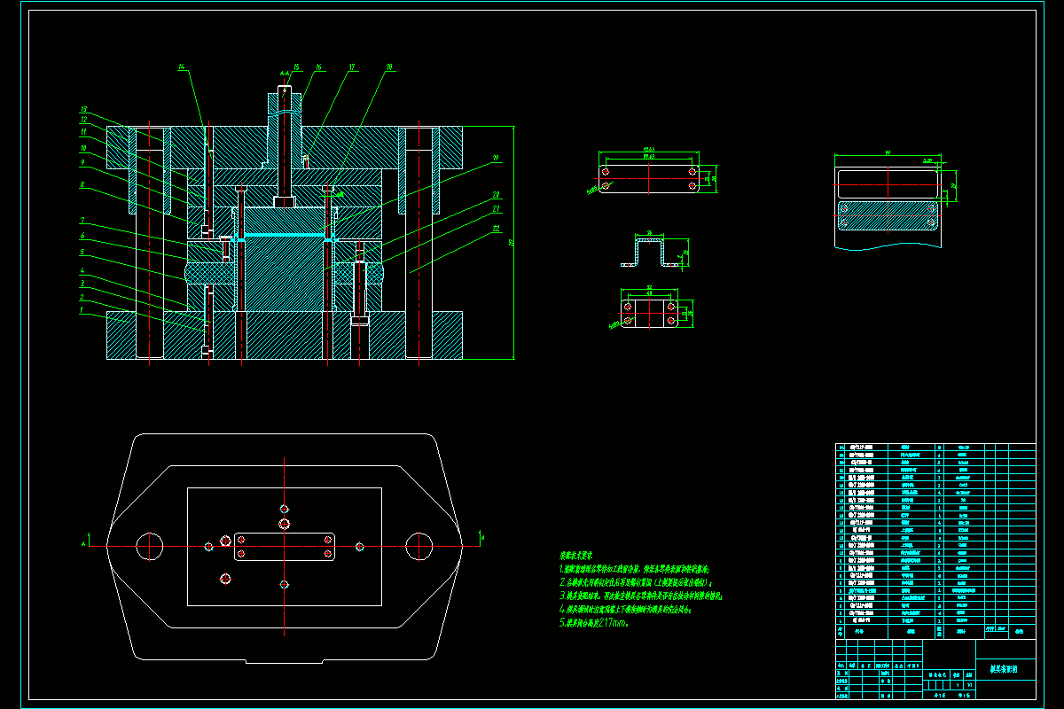 冲压模具为一种常用的模具,冲压模具的种类很多,按照工序数目、模具尺寸大孝冲压件的工艺种类,其分类都不同。最近几年,冲压模具的使用越来越被广泛使用,冲压模具的特点具备生产尺寸精度高,尺寸偏差稳定,冲压模具的模具运行稳定、生产效率高、模具耗材成本低、设计制造周期短、极其容易实现自动化生产,大幅度的避免了人工生产带来了的制造误差。分析指导老师所给定的课题,冲裁件由弯曲、冲孔、落料等工艺组成,模具设计前,因先对冲裁件进行工艺分析,结合冲裁件给定图纸的尺寸、上下极限偏差、冲裁件的生产批量、冲裁件要求的生产材料来确定模具的设计制造精度,各方面确定模具的生产寿命,选择相对应的模具制造耗材。这次的模具设计为了保证冲裁件的表面质量,防止冲裁件弯曲后的回弹,分别采用了冲孔落料、弯曲等两幅复合模具,模具方案确定以后,开始绘制模具草图,计算模具的先关参数,选择相对应的模具安装设备。