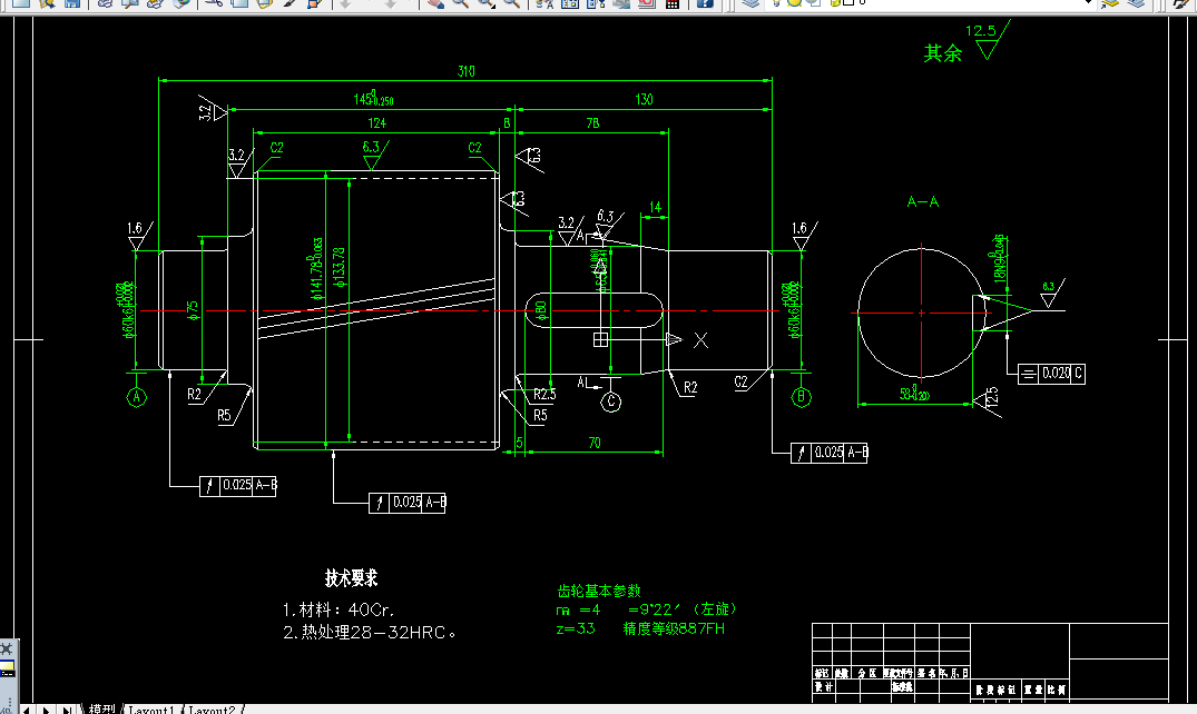 这次设计有零件图、毛坯图、装配图各一张,机械加工工艺过程卡片和与所设计夹具对应那道工序的工序卡片各一张。首先我们要熟悉零件,题目所给的零件是齿轮轴。了解齿轮轴的作用,接下来根据零件的性质和零件图上各端面的粗糙度确定毛坯的尺寸和机械加工余量。然后我们再根据定位基准先确定精基准,后确定粗基准,最后拟定齿轮轴的工艺路线图,制定该工件的夹紧方案,画出夹具装配图,夹具体零件图。