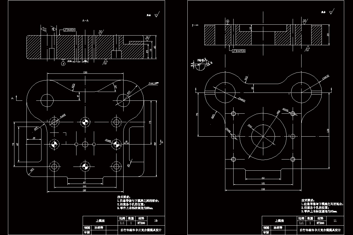 本设计主要介绍了自行车刹车卡片复合模模具设计的过程,自行车刹车卡片进行了详细的工艺分析、确定冲压工艺方案及模具结构形式分析,后进行排样设计、压力中心计算、冲裁力计算、工作零件刃口尺寸的计算等,最后通过AutoCAD绘制自行车刹车卡片复合模模具装配总图和零件图。