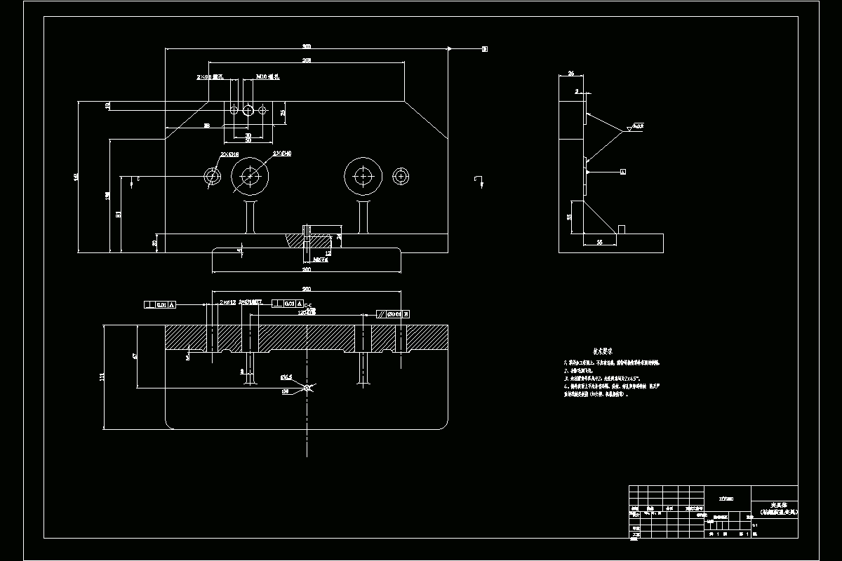 接着,根据工序9的加工需求,我选用了一面两销的定位方式来加工工件。根据一面两销的原则,我设计了钻M8螺纹孔的专用夹具,通过查相关的资料,我用SolidWorks软件绘制了专用夹具的三维图纸。然后将三维图纸转化为二维图纸,并反复修改得到最终的二维图纸。