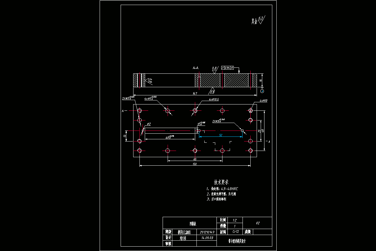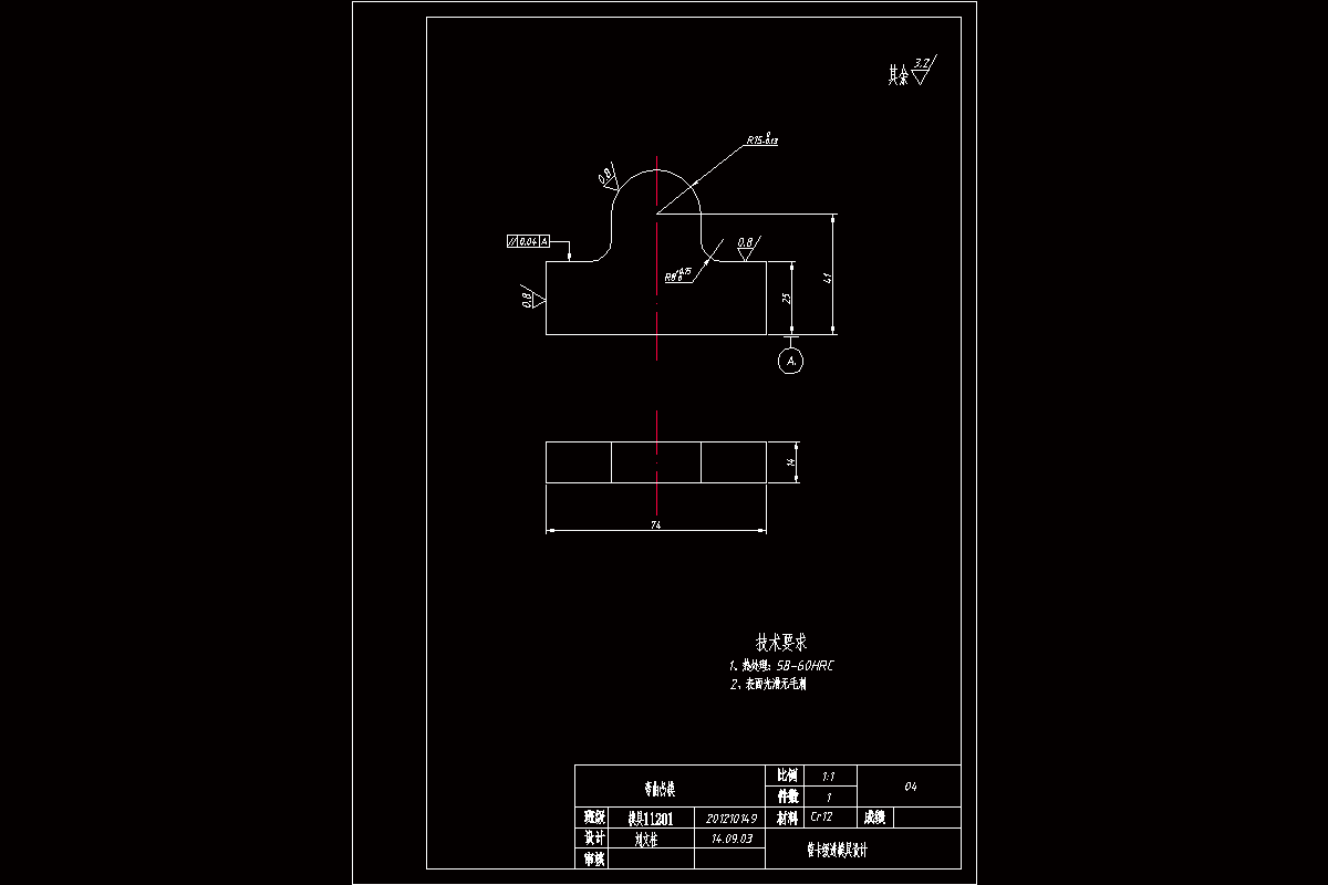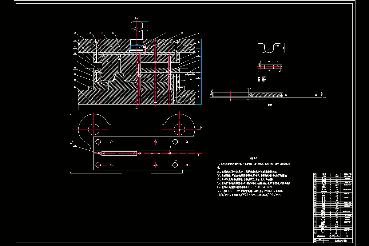 本文设计的模具为管卡级进模,使用方便可靠。该模具主要有冲孔、切断、弯曲等工序。首先通过对制件进行工艺分析、确定冲压工艺方案及模具结构形式,然后进行排样设计、压力中心计算、冲裁力计算、工作零件刃口尺寸的计算等,最后通过CAD绘制模具的装配图及零件图。