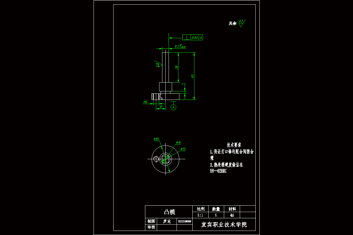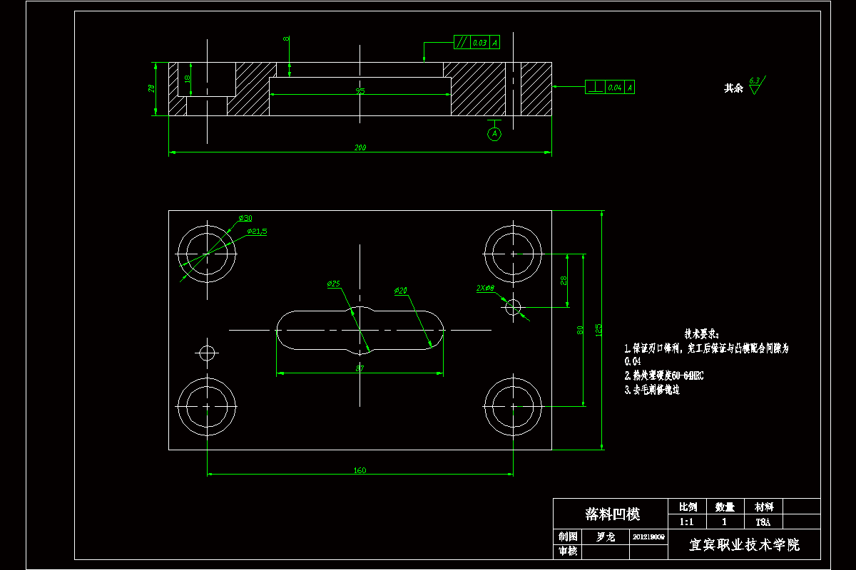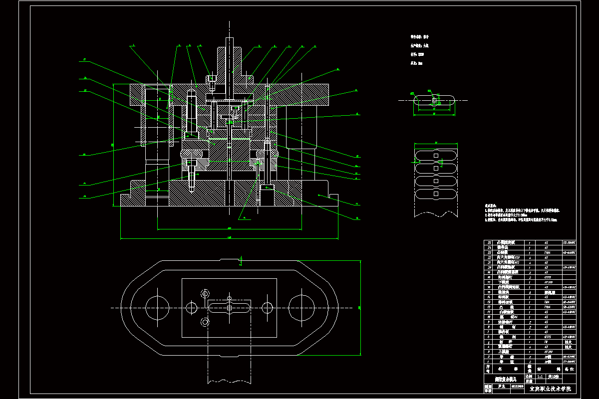 本套模具是方孔扳手,材料为Q235钢,厚度t=2mm。采用倒装复合模来加工零件。此种模具结构简单紧凑,工作过程相对单工序模具更安全可靠。而后在具体的设计过程中,需要依次计算毛坯尺寸,计算出冲裁时的冲压力、卸料力、推件力,然后确定模具的压力中心,根据前面所计算出的内容选择压力机和确定冲模的闭合高度,再确定模具的凸、凹模形状和尺寸,最后设计出挡料销、卸料板、推件装置、弹性元件、导柱、导套和模柄等模具的主要零部件,同时画出详细的零件图及装配图,从而完成整套模具的设计工作。